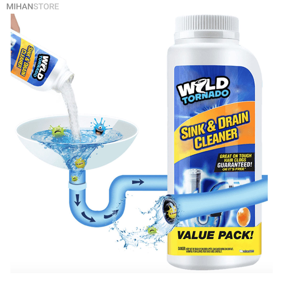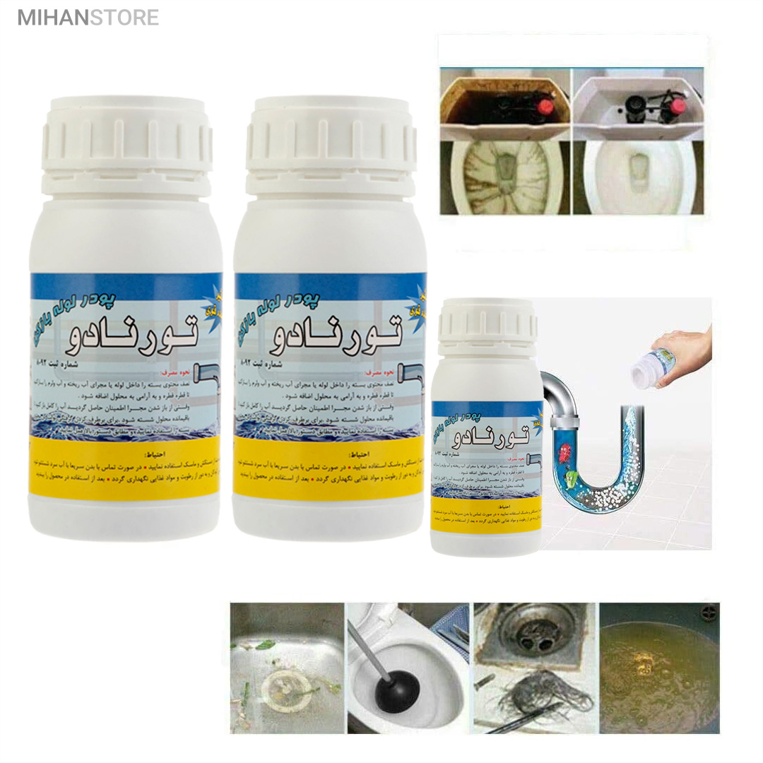 این محصول با قدرت فوق العاده و با فرمولاسیون جدید طی یک واکنش شیمیایی باعث باز شدن سریع لوله های فاضلاب، دستشویی، حمام و آشپزخانه و غیره شده و بوی نامطبوع را از بین می برد و هیچ گونه صدمه ای به لوله ها وارد نمی کند.با شستوشوی سبزیها، میوه یا غذا از روی ظروف مقداری جرم درون سیستم فاضلاب و لولهکشی قرار خواهد گرفت. با توجه به اینکه جرم درون لولهها بعد از مدتی باعث بسته شدن راه عبور آب خواهد شد، ممکن است با بسته شدن مسیر خروج آب و همچنین افزایش جرم، آسیبهای متنوعی به سیستم فاضلاب یا حتی لوازم درون منزل زده شود. حتی در بعضی موارد پیشآمده که در اثر این مشکل، سقف یا دیوار نیز دچار آسیب شده است. پودر لولهبازکن تورنادو با وزن  250گرم برای از بین بردن جرم و مانع بسیار کارساز خواهد بود. پودر لولهبازکن تورنادو  را میتوان با آب بهصورت محلول استفاده کرد. پودر لولهبازکن را کمی درون سیستم فاضلاب ریخته و با اضافه شدن آب گرم به آن، میتوان مسیر خروج آب را باز کرد. در ادامه با آب سرد میتوان مسیر را بهصورت کامل شستوشو داد.