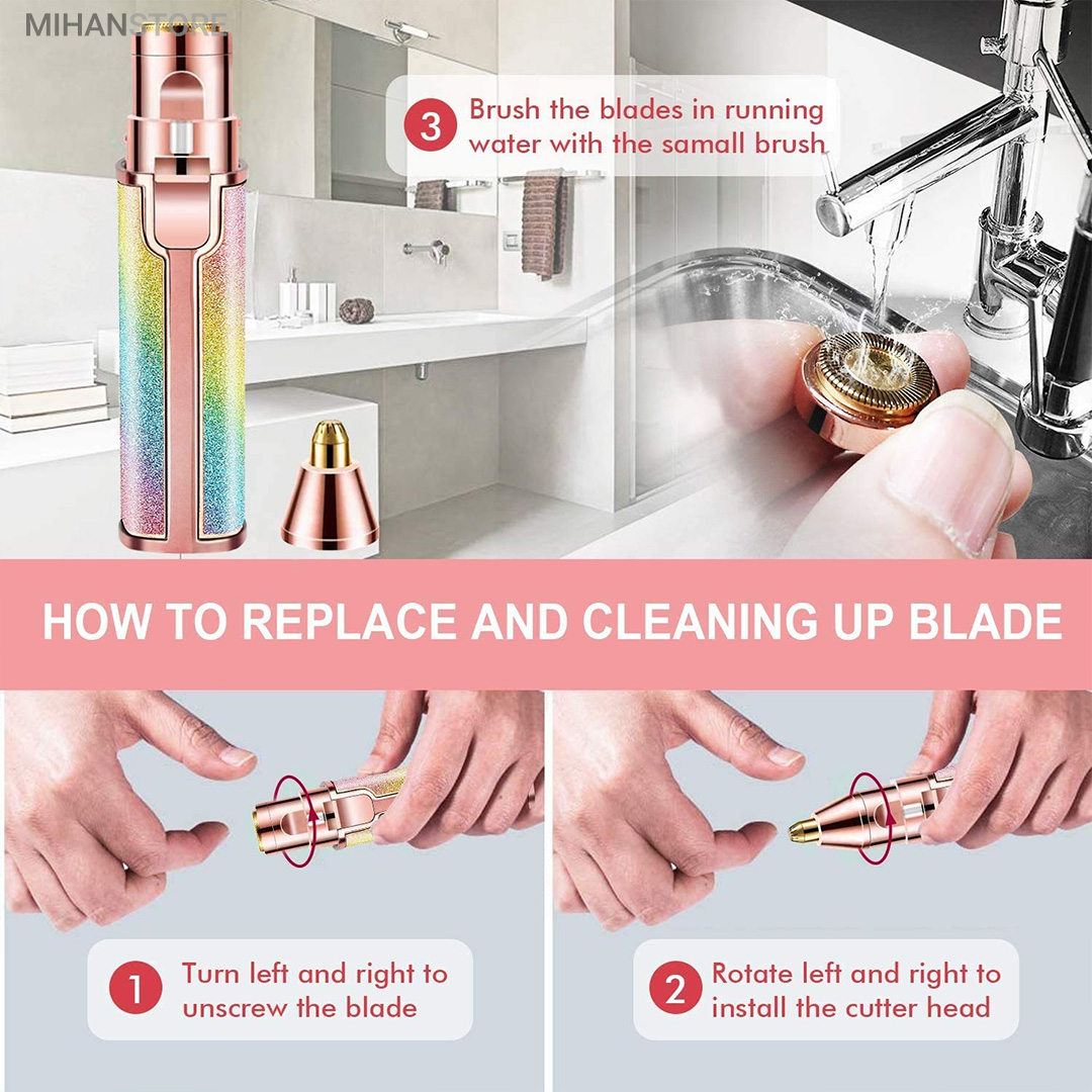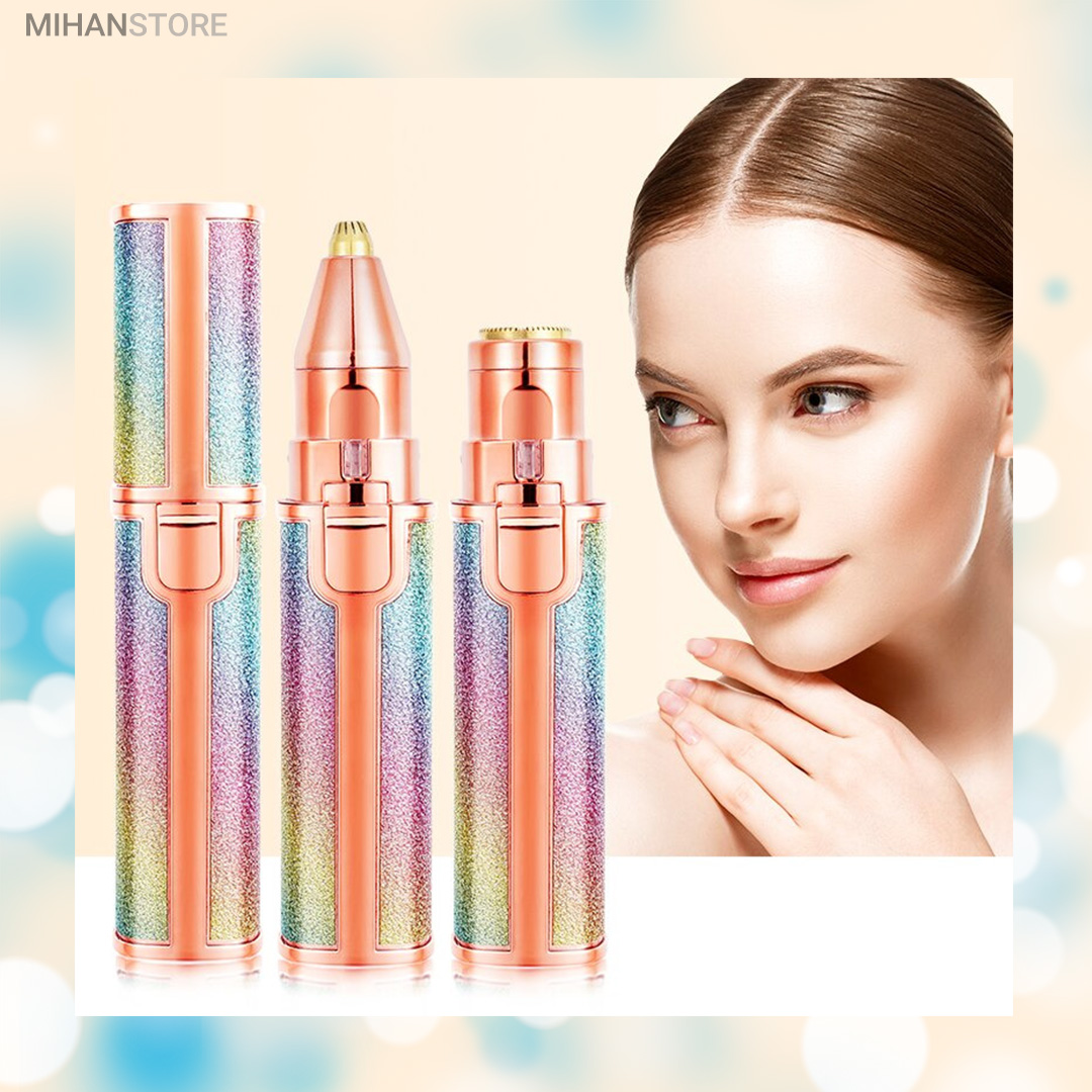 دستگاه اصلاح صورت و بدن ماتیکی دو کاره شارژی رنگی یک محصول فوق العاده با کیفیت و با کارایی های بالا می باشد که توسط آن که اندازه بسیار مناسبی شبیه یک رژ لب معمولی دارد می توانید هم کار اصلاح موهای زائد نقاط حساس صورت و بدن را بدون درد انجام دهید و هم توسط سری موزن آن با دقت بسیار بالا ، ابروها و موهای داخل بینی و روی گوش ها را کاملا تمیز نمایید. در واقع شما با خرید یک محصول چند محصول پرکاربرد را همیشه همراه خود خواهید داشت و چی از این بهتر؟ رنگ فوق العاده زیبای آن باعث می شود در همان نگاه اول عاشقش شوید و از داشتن آن نهایت لذت را خواهید داشت. شارژی بودن و عدم نیاز به تهیه و تعویض باتری از دیگر نکات مثبت این محصول می باشد که توسط کابل های موبایل های معمولی اندرویدی نیز می توانید در همه جا آن را شارژ نموده و استفاده نمایید.این دستگاه شیور زنانه دوکاره دارای دو سری مختلف می باشد که سری اول همان سری معروف دستگاه موزن ماتیکی می باشد که برای از بین بردن موهای زائد صورت و بدن استفاده می شود و سری دوم آن ، موزن بوده و برای اصلاح ابرو و از بردن موهای زائد ابرو و بینی و گوش قابل استفاده می باشد ، سری ها به راحتی تعویض شده و بعد از جدا کردن از دستگاه می توانید آن ها را با آب شستشو دهید. برای تعویض سری ها کافی است کمی آن ها را چرخانده و به سمت بیرون بکشید تا جدا شوند و برای جا انداختن دوباره آن ها نیز کافی است سری را در جای مشخص قرار داده و کمی بچرخانید، بسیار ساده است. این محصول دارای کیفیت درجه یک می باشد و برای هدیه دادن بسیار بسیار گزینه مناسب و ایده آلی است زیرا هر خانمی به دلیل رنگ خیره کننده اش از دیدن آن شگفت زده می شود و در عین حال بسیار کارآمد و مفید می باشد و آن را تبدیل به هدیه ای دوست داشتنی و به یاد ماندنی تبدیل می کند که همیشه آن را در کیف خود به همراه خواهد داشت. برای شارژ کردن این محصول کافی است توسط کابل شارژ درون جعبه و یا هر کابل شارژ میکرو یو اس بی موبایل های اندرویدی آن را توسط شارژرهای موبایل یا یو اس بی کامپیوتر و یا حتی پاوربانک شارژ نمایید و بعد از هر بار فول شارژ شدن می توانید برای مدت زیادی از آن استفاده نمایید. در این محصول یک عدد چراغ نیز وجود دارد که باعث می شود خیلی بهتر بتوانید موهای زائد را مشاده نموده و از شر آنها خلاص شوید این چراغ به اندازه کافی پر نور می باشد.