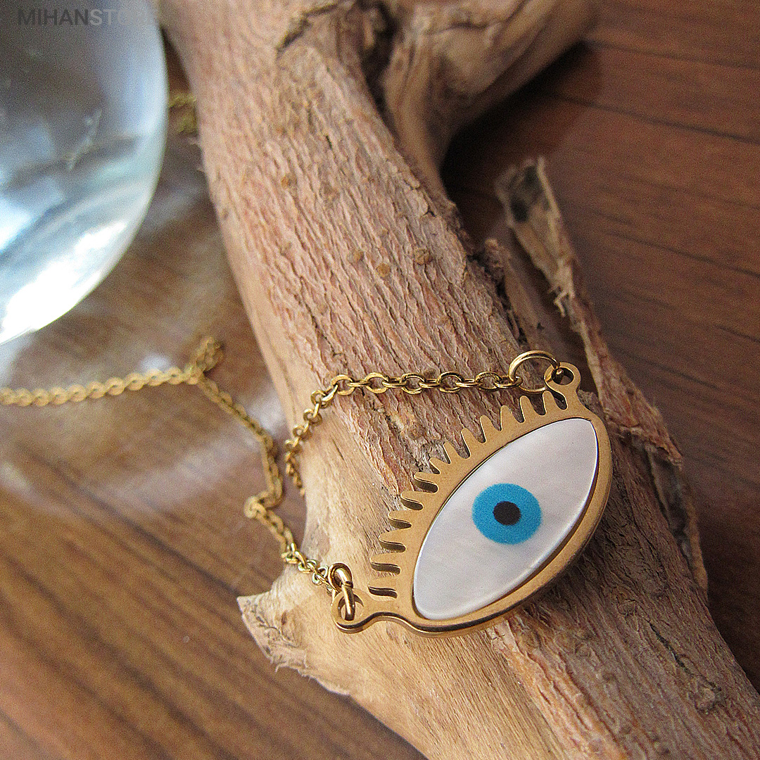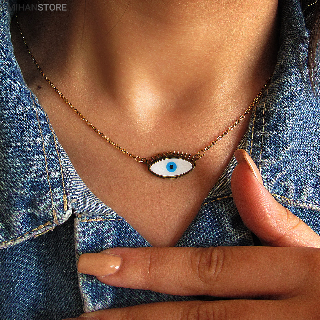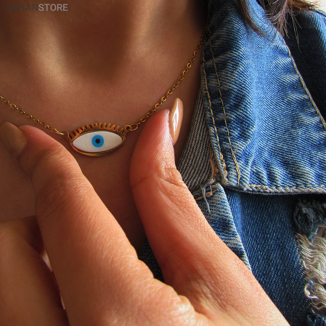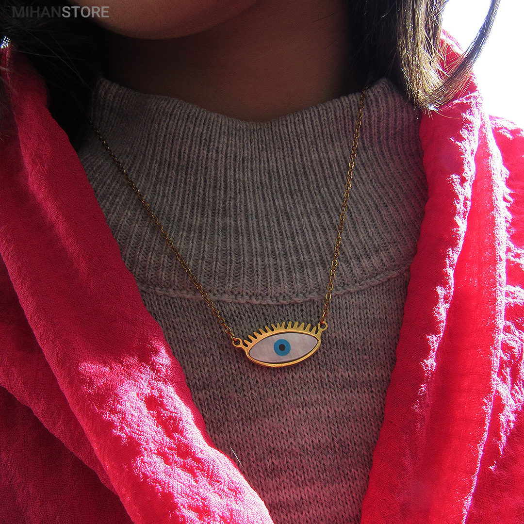 این گردنبند از استیل رنگ ثابت ساخته شده و دارای پلاک چشم نظر خاص و زیبا می باشد که به شکل چشم و مژه به زنجیر متصل می باشد. استفاده از گردنبند برای دوری از چشم زخم، سحر و آسیب به مال و جان توصیه شده است. حس آرامش خوبی را به شما منتقل کرده و مناسب استفاده کودک تا بزرگسال است. گردنبند طرح چشم نظر که از جنس استیل طلایی رنگ ثابت و ضد حساسیت می باشد، هیچ گونه حساسیتی برای پوست ایجاد نمی کند و با خیال آسوده می توانید از این گردنبند استفاده نمایید. این گردنبند یک زنجیر از مدل دیپلمات ساده طلایی با طول 42 سانتیمتر دارد که با قفل مدل قلاب محکم بسته می شود.این زیور به دلیل ابعاد ظریف و طراحی ساده و زیبایی که دارد براحتی مورد قبول سلیقه های خاص قرار میگیرد. همچنین زیبایی و خاص بودن این محصول یک هدیه ی مناسب و جالب برای هر مناسبتی می تواند باشد.