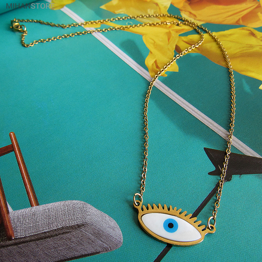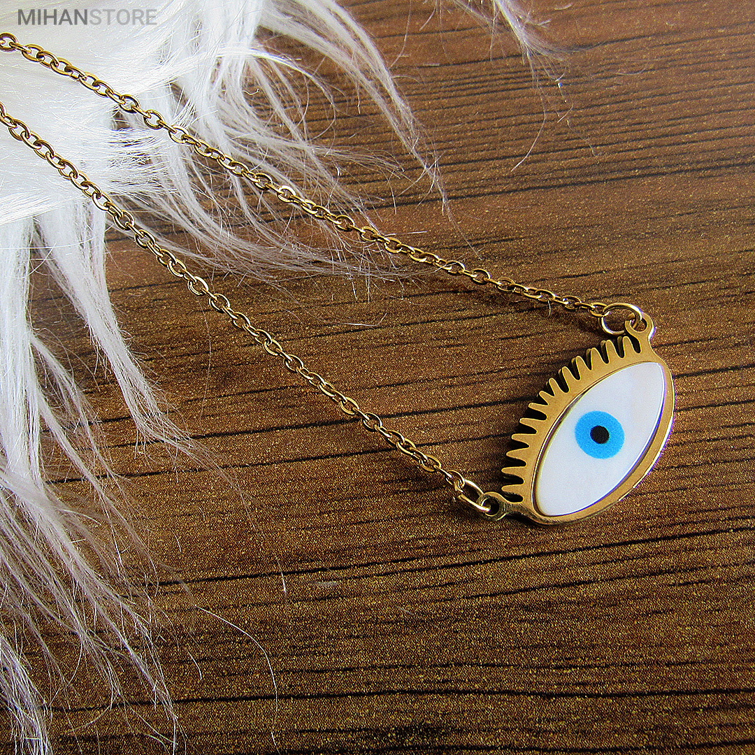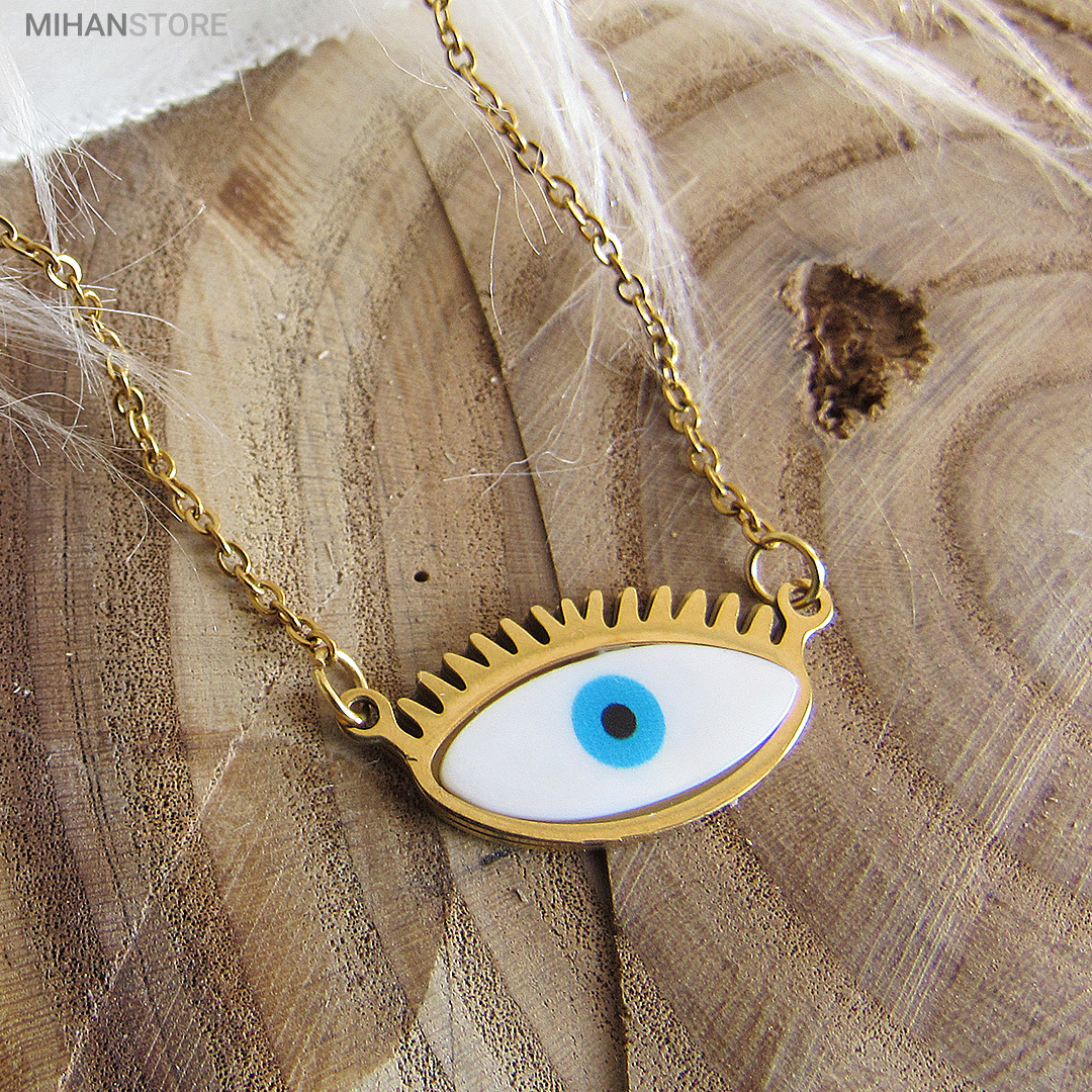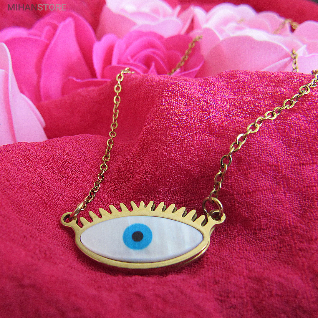 این گردنبند از استیل رنگ ثابت ساخته شده و دارای پلاک چشم نظر خاص و زیبا می باشد که به شکل چشم و مژه به زنجیر متصل می باشد. استفاده از گردنبند برای دوری از چشم زخم، سحر و آسیب به مال و جان توصیه شده است. حس آرامش خوبی را به شما منتقل کرده و مناسب استفاده کودک تا بزرگسال است. گردنبند طرح چشم نظر که از جنس استیل طلایی رنگ ثابت و ضد حساسیت می باشد، هیچ گونه حساسیتی برای پوست ایجاد نمی کند و با خیال آسوده می توانید از این گردنبند استفاده نمایید. این گردنبند یک زنجیر از مدل دیپلمات ساده طلایی با طول 42 سانتیمتر دارد که با قفل مدل قلاب محکم بسته می شود.این زیور به دلیل ابعاد ظریف و طراحی ساده و زیبایی که دارد براحتی مورد قبول سلیقه های خاص قرار میگیرد. همچنین زیبایی و خاص بودن این محصول یک هدیه ی مناسب و جالب برای هر مناسبتی می تواند باشد.