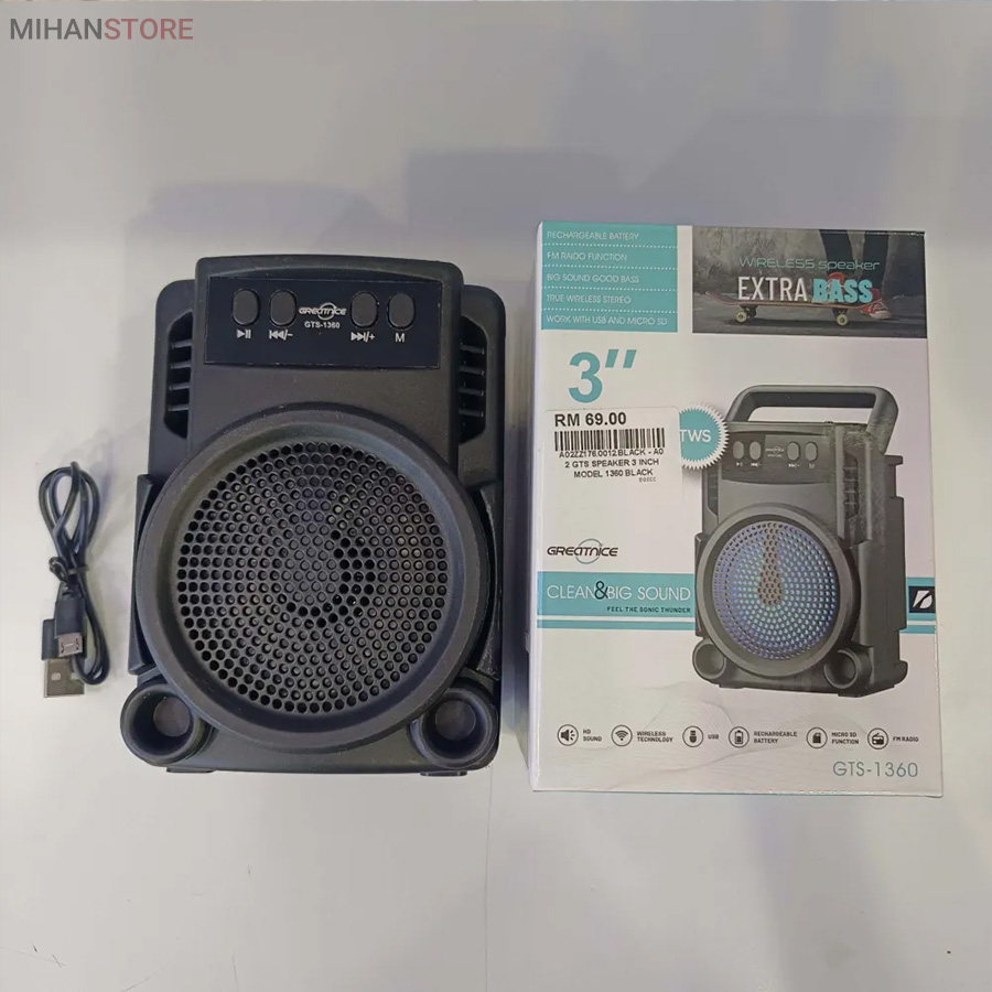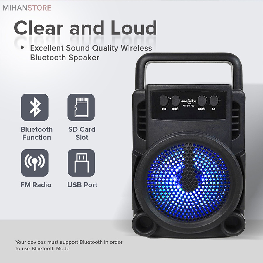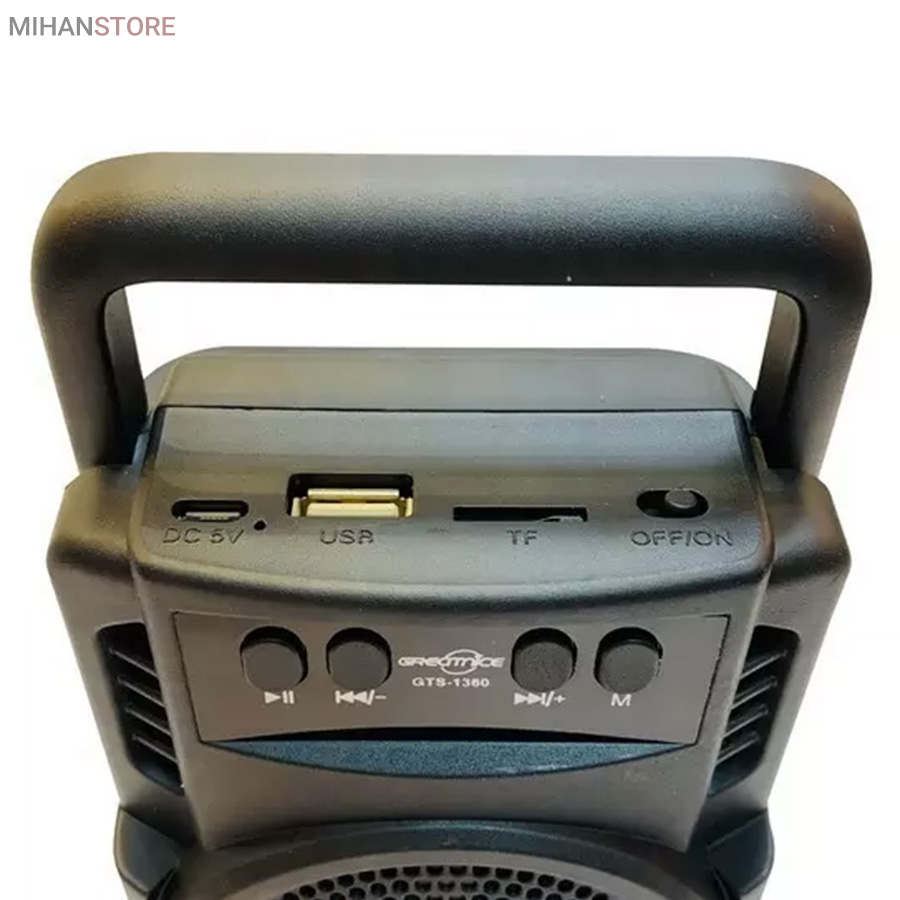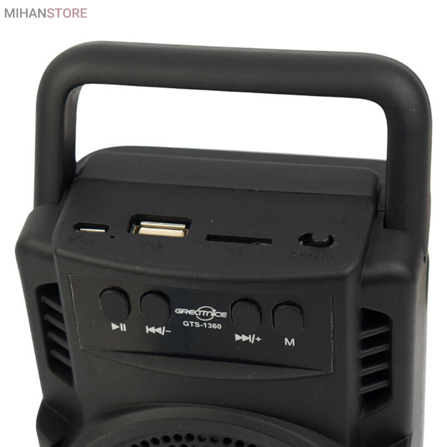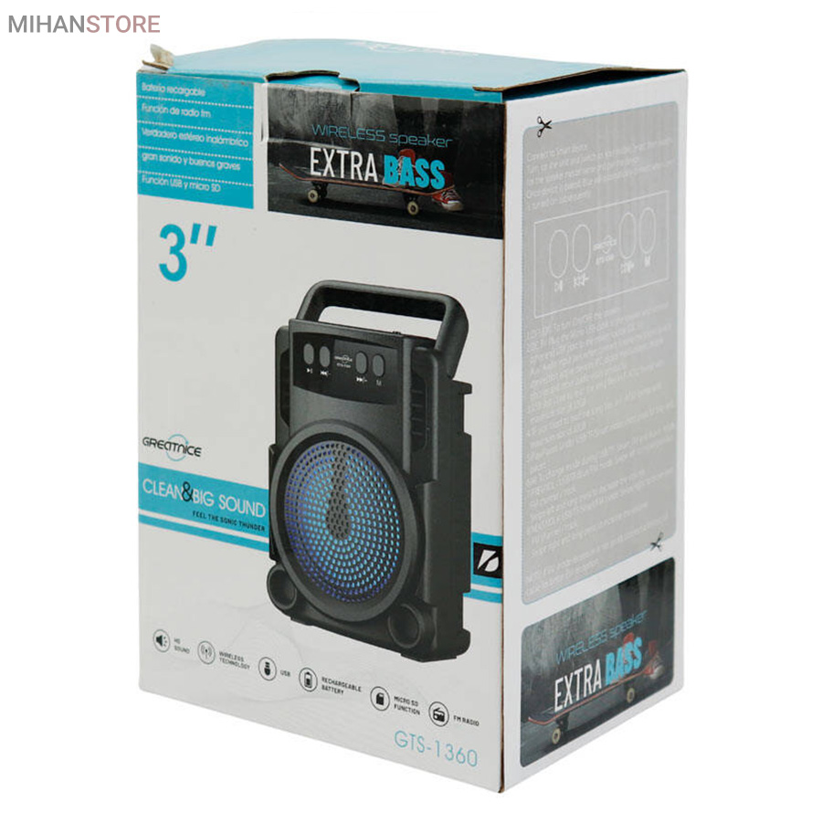 اسپیکر بلوتوثی قابل حمل Fantastic Quality مدل GTS - 1360  یا گریت نایس طراحی زیبا و جمع و جور دارد که مناسب برای پیاده روی ، کوهنوردی ، مسافرت و … می باشد. این اسپیکر داری رقص نور ال ای ادی می باشد. یکی از تفریحات لذتبخش، گوشکردن به آهنگی دوستداشتنی و شاد در گردشها همراه دوستان است. زمانی ضبط صوتها همراه بسیار خوبی برای ارایهی موسیقی در هر مکانی بودند؛ ولی با پیشرفت تکنولوژی و منسوخ شدن استفاده از نوار کاستها، ضبط صوتها جای خود را به اسپیکرهای قابلحمل دادند. اسپیکرهای قابلحمل معمولا برای تامین انرژی خود از یک باتری داخلی قدرتمند استفاده میکنند. این اسپیکر برای اتصال به تلفن همراه، پخشکنندهی صوتی و حتی رایانه و لپتاپ از فناوری بلوتوث بهره میبرد. اندازهی بسیار کوچک در برابر قدرت بالای این اسپیکر شما را شگفتزده خواهد کرد. برای استفاده از این اسپیکر تنها کافی است آن را از طریق بلوتوث به پخشکنندهی صوتی خود متصل کنید و از صدای قدرتمند آن لذت ببرید.