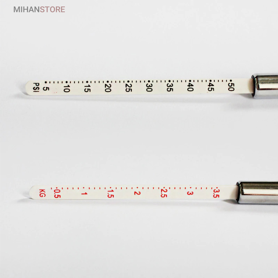 درجه تنظیم باد لاستیک خودرو تاپیکس با طراحی نوین تولیدشده از بدنه فلزی به طول 14 سانتیمتر و قطر 1 سانتیمتر همانند یک خودکار در جیب یا داشبورد خودرو جا شده فضای اندکی را اشغال و بهراحتی در دسترس خواهد بود. این درجه تنظیم باد خودرو مدرج به 4 واحد اندازهگیری و قابلیت حداکثر 50 جهت اندازهگیری باد لاستیکهای وسایل نقلیه سبک مورداستفاده قرار میگیرد و از اندازهگیری باد لاستیکهای خودروهای سنگین مثل اتوبوسها و کامیونها جدا خودداری فرمایید.