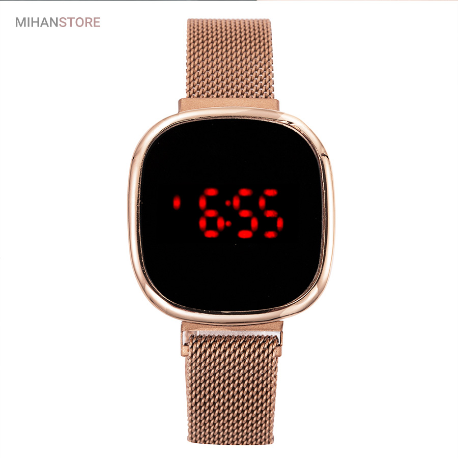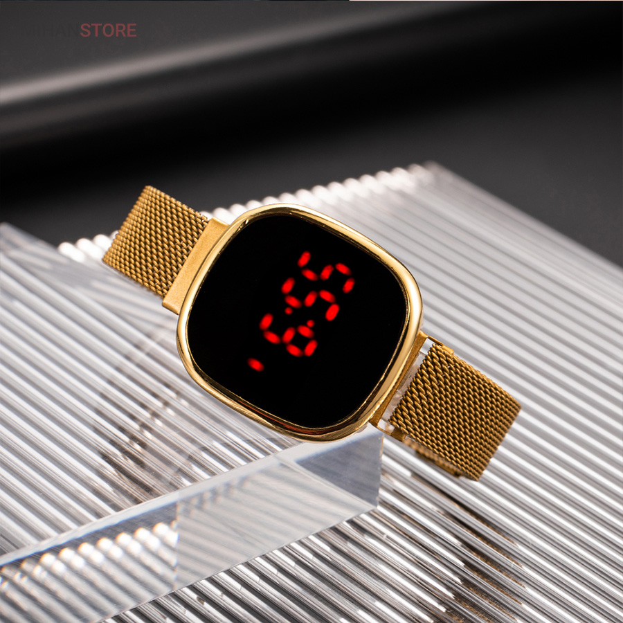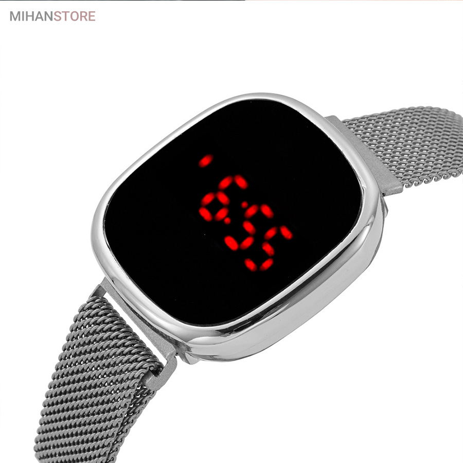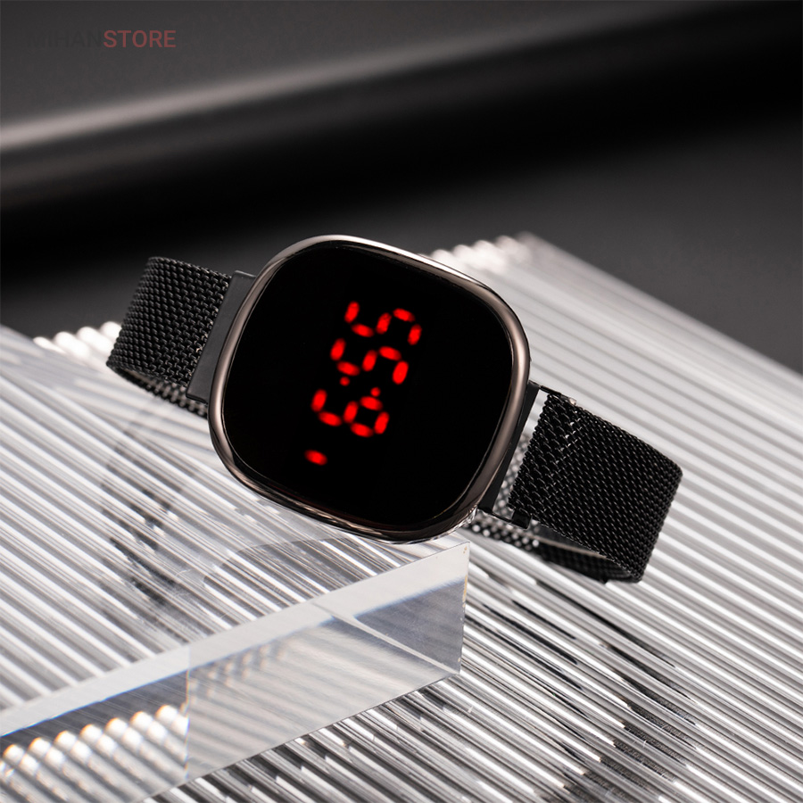 چراغ های LED قرمز رنگ ساعت را برای شما نمایش می دهد. صفحه نمایشی و مربع شکل ساعت در ابعاد 40 × 40 میلیمتر طراحی شده و ضخامت آن در قسمت بدنه 10 میلیمتر است.  این ساعت