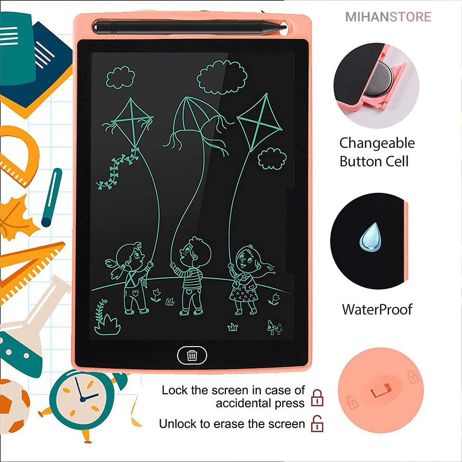 تبلت جادویی پاک شونده داری صفحه نمایش LCD حساس به فشار قلم یا حتی لمس ناخن جهت نوشتن،کشیدن نقاشی،کشیدن نقشه،حسابداری،یادداشت برداشتن و…کاربرد دارد. با طول عمر فوق العاده جایگزین خوبی برای کاغذ،تخته سفید و..شده است. از مواد پلاستیکی با دوام ساخته شده و مناسب جهت استفاده در منزل ،مدارس،ماشین و…می باشد. لازم به ذکر است از هر ماده ی شیمیایی جهت پاک کردن کاغذ دیجیتالی استفاده ننمایید و کافیست دکمه تبعیه شده در پایین تبلت را برای پاک کردن صفحه فشار دهید.
