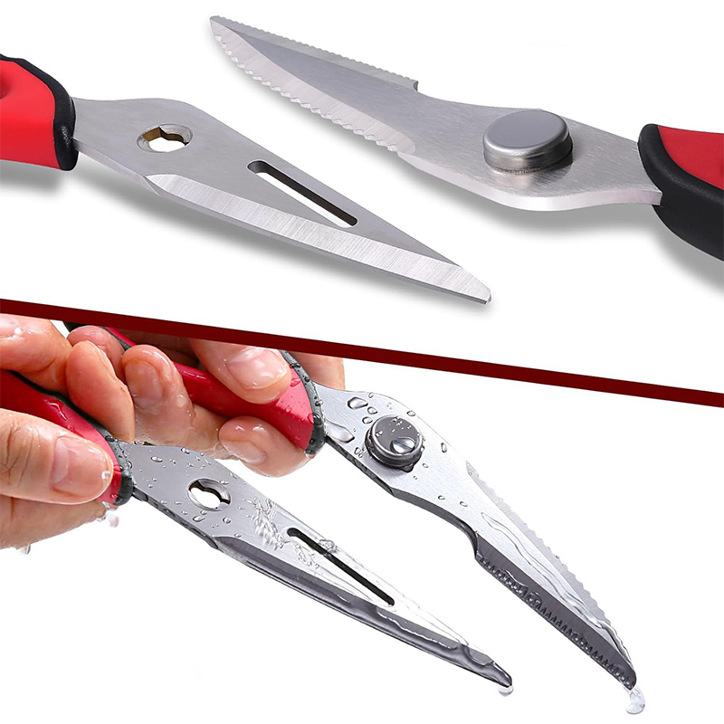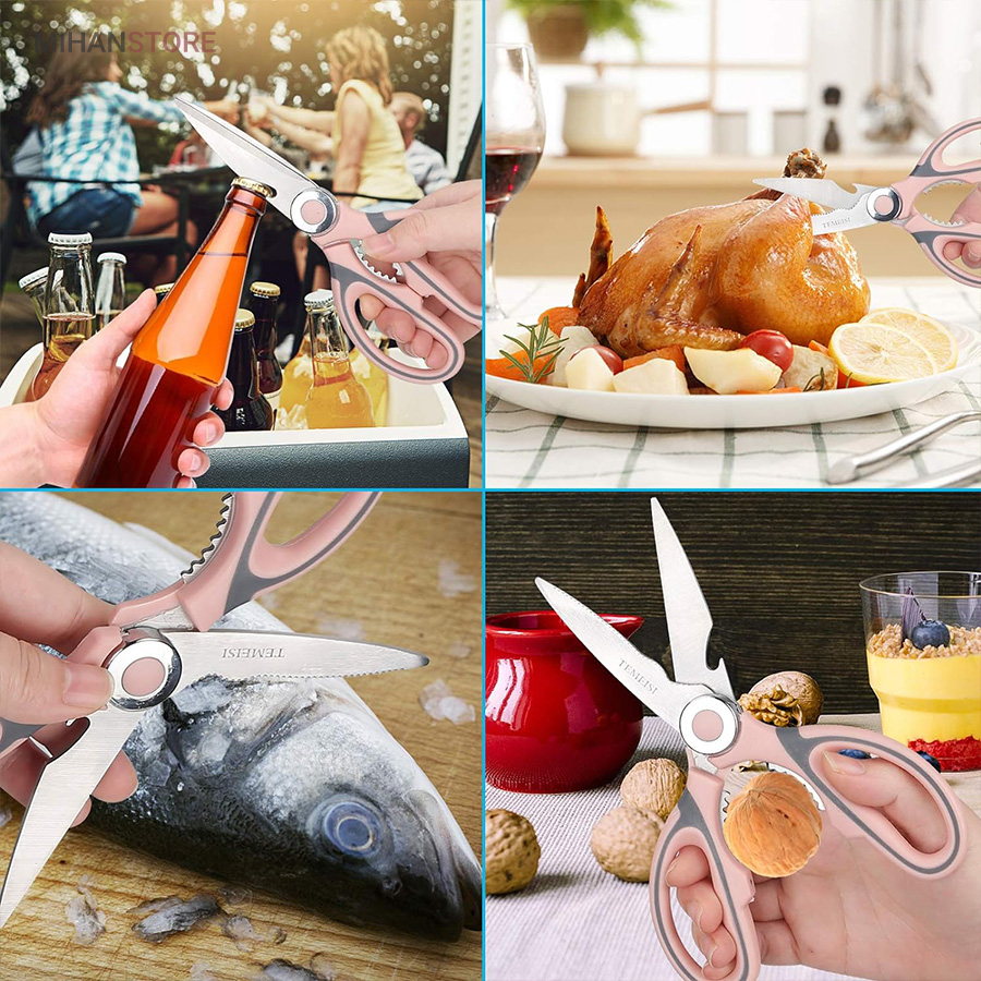 هم قیچی، هم بازکن، هم کابل کش و هم چاقو! این قیچی جادویی 8 کاره باورنکردنی در هر زمینه ای مفید خواهد بود. محصولی کاملاً جدید که باید در کار آشپزخانه خود داشته باشید و کار شما را آسانتر میکند و نمیتوانید نزدیک آن باشید. در آشپزخانه می توانیم هنگام سرو مرغ، سبزیجات را خرد کنیم یا به راحتی استخوان ها را برش دهیم. می توانید از آن به عنوان کرکر فندقی یا گردو استفاده کنید. به راحتی می توانید درب بطری های خود را باز کنید. به طور خلاصه، به لطف قیچی جادویی 8 کاره، کاری که در زندگی روزمره انجام می دهید اکنون کاربردی تر شده است. قابل شستشو در ماشین ظرفشویی می باشد.