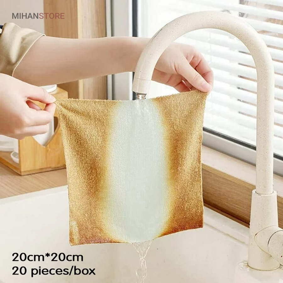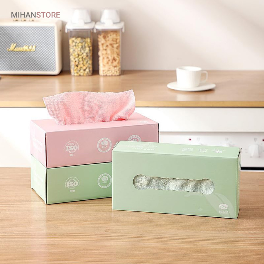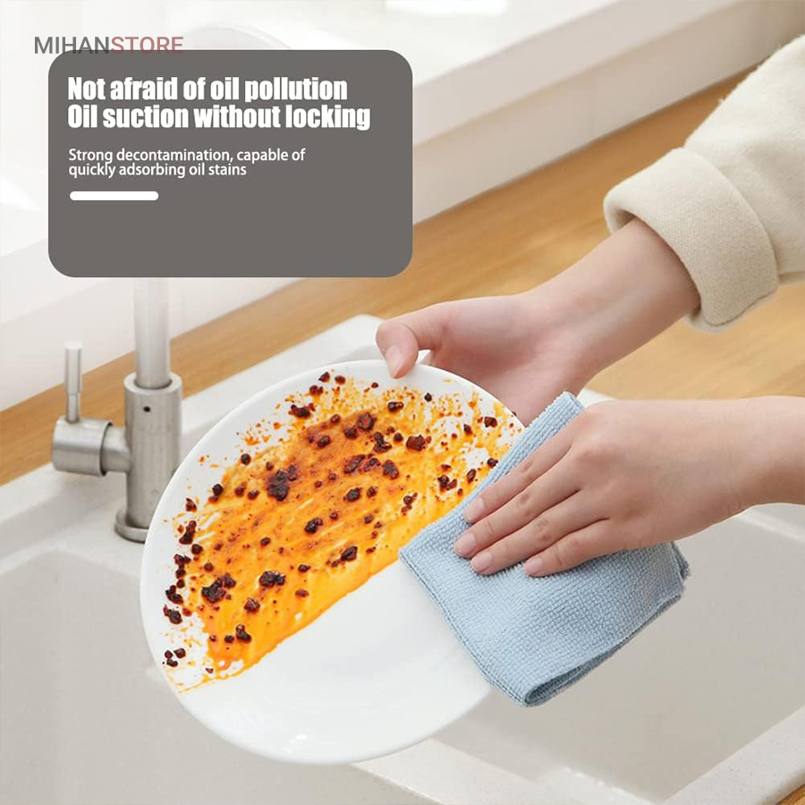 دستمال حوله ای آشپزخانه میکروفایبر 20 عددی مناسب شستشو و آبگیری ظروف و سطوح داخل آشپزخانه  با قدرت جذب بسیار بالا، بدون پرزدهی و شستشوی راحت و همچنین قابل استفاده برای تمیز کردن صفحه موبایل، مانیتور، تلویزیون و خودروی شما، بدون ایجاد خش هیچ لکه ای را به جا نمی گذارد.این دستمال ها در رنگبندی های متنوع در یک پک کاملا بهداشتی و زیبا موجود می باشد. که به عنوان دستمال سفره و دستمال کودک نیز قابل استفاده است.همچنین این محصول با فناوری میکروفایبر تولید شده است که قابلیت جذب سریع آب و خاصیت الکترواستاتیک (ضد پرزدهی) و همچنین نرمی الیاف برای صفحه نمایش ها را دارا می باشد.سایز دستمال حوله ای میکروفایبر 20 سانتی متر در 20 سانتی متر می باشد. محصولات نظافتی و شستشو جزیی از ابزار جدانشدنی یک خانه مرتب و عالی است.پارچه تمیز کننده جادویی فوق العاده نرم رنگ، شیشه یا هر سطحی را خراش نمی دهد. با جذب فوق العاده، مقاوم در برابر محو شدن، قابل شستشو، قابلیت تمیز کنندگی قوی و تمیز کردن آسان.دستمالها از مواد میکروفیبر دو طرفه ضخیم با چگالی بالا با پرز کم و انقباض کم ساخته شدهاند، به خوبی ساخته شدهاند، بادوام هستند و میتوانند بارها مورد استفاده مجدد قرار گیرند.به سادگی حوله ظرف را برای چند لحظه بدون افزودن مواد شوینده در آب خیس کنید، سپس دستمال تمیز کننده را فشار داده و شروع به تمیز کردن کنید.پارچه نظافتی آشپزخانه چند منظوره است، به آشپزخانه محدود نمی شود، می توانید از آن برای تمیز کردن کابینت حمام، آینه، دیوار، توالت و غیره استفاده کنید. البته می توان از آن برای تمیز کردن پنجره، شیشه، میز استفاده کرد.