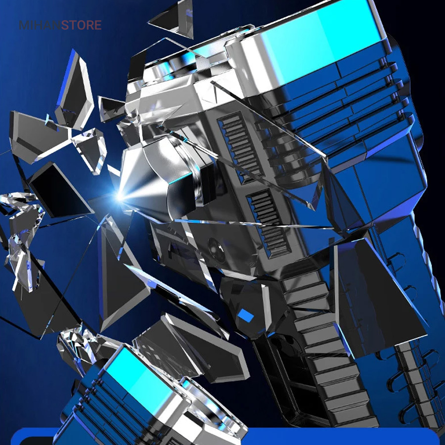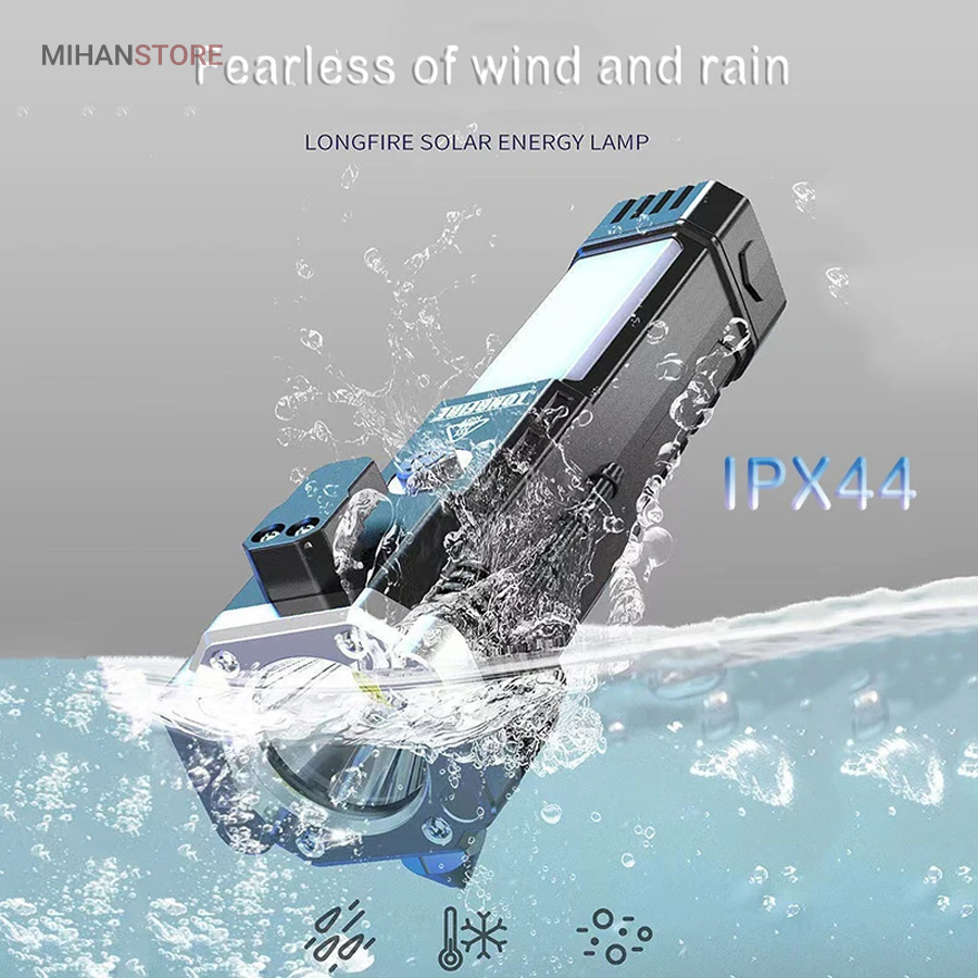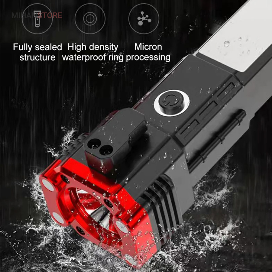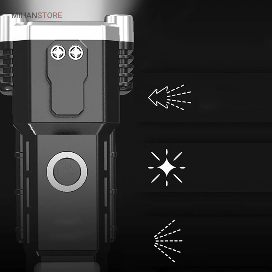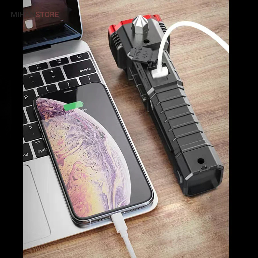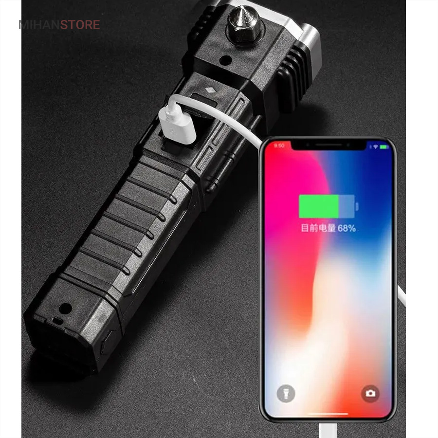 این چراغ قوه شارژی که جنس بدنه از آلیاژ است و دربرابر ضربه بسیار مقاوم است. دارای  سیستم ضد آب است و ایمن برای استفاده حتی در زیر باران میباشد. کابل های مهر و موم شده با کیفیت بالا  به گونه ای که می تواند حتی در هنگام باران نیز به کار خود ادامه دهد. شارژ چراغ قوه از طریق کابل USB به سادگی با اتصال به پاور بانک و برق شهری و ... میباشد.نور چراغ نور سفید 800/3800 است.محدوده نور حدود 300 متر است.نور بصورت 4 حالت روشنایی نور قوی بالا/نور کم/نور بارق/نور جانبی COBاست و با باتری: 18650 باتری آلومینیومی شارژی که داخل آن تعبیه شده است کار میکند . این چراغ قوه شما را از هرنوع چراغ اضطراری دیگر بی نیاز می سازد.