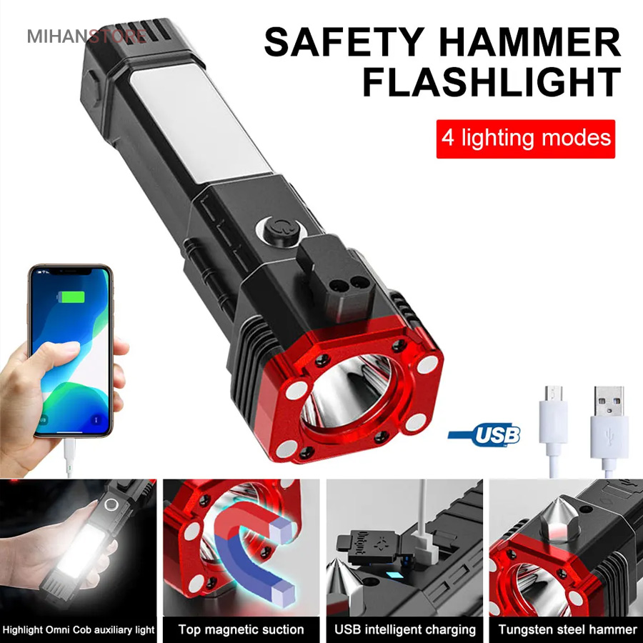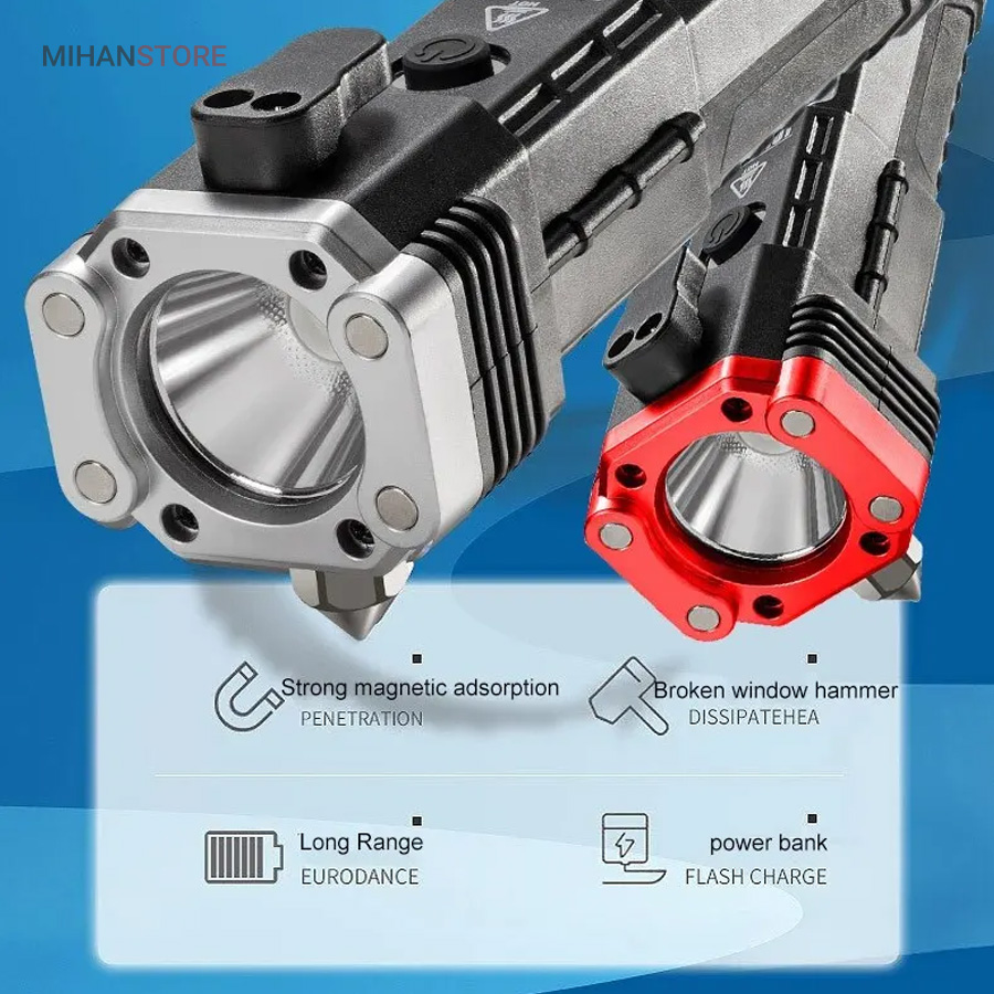 3 حالت نور- دارای چکش اتش نشانی-دارای تیغ مخفی برای بریدن کش و