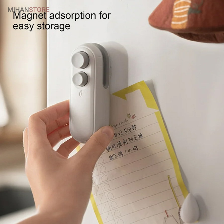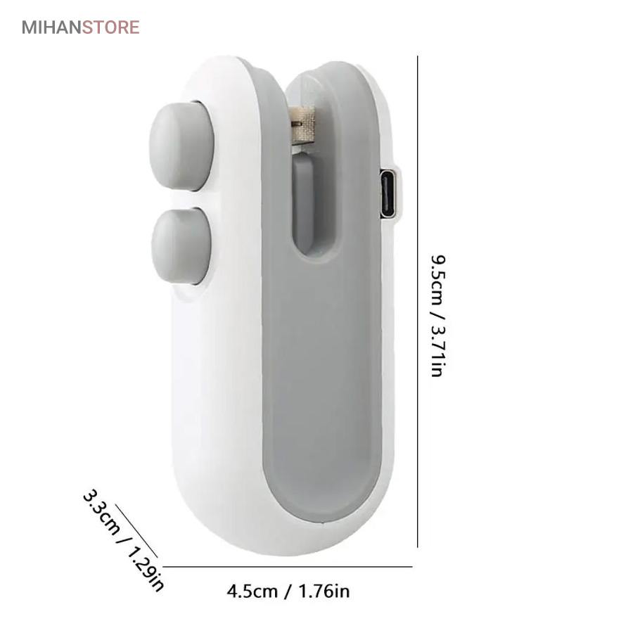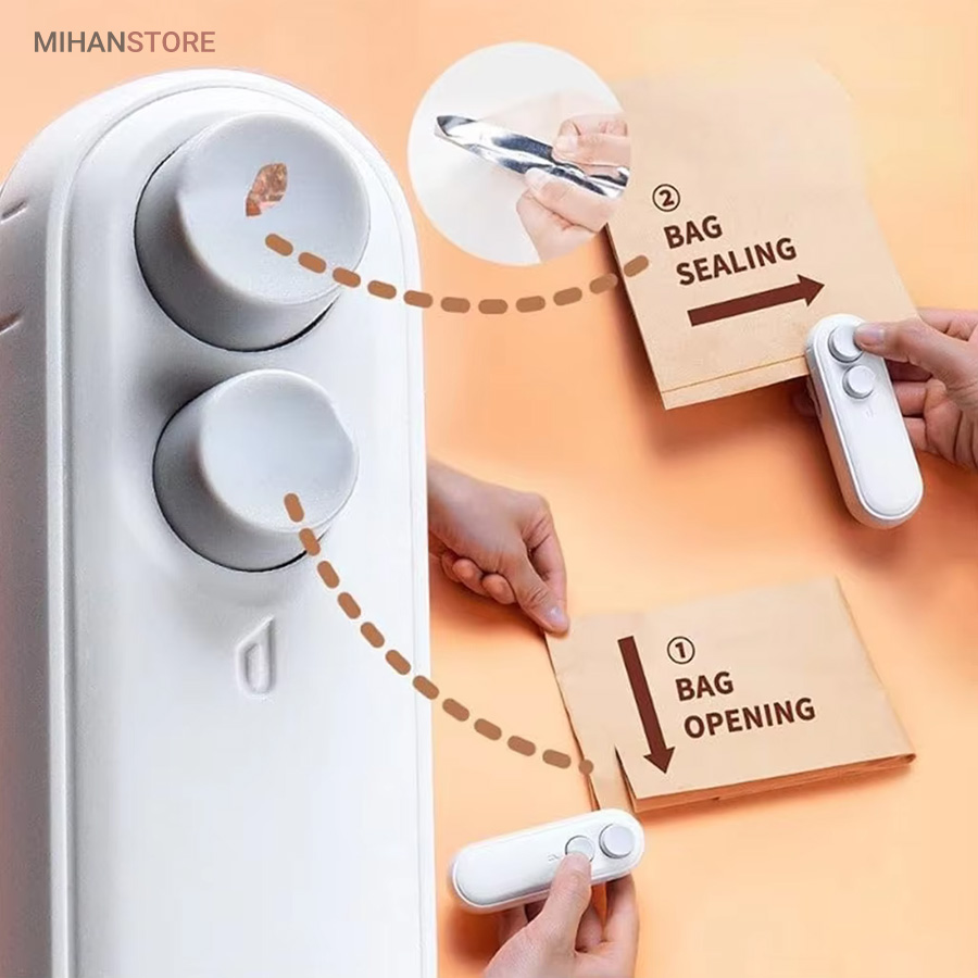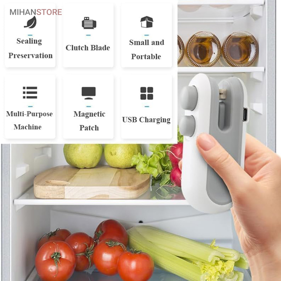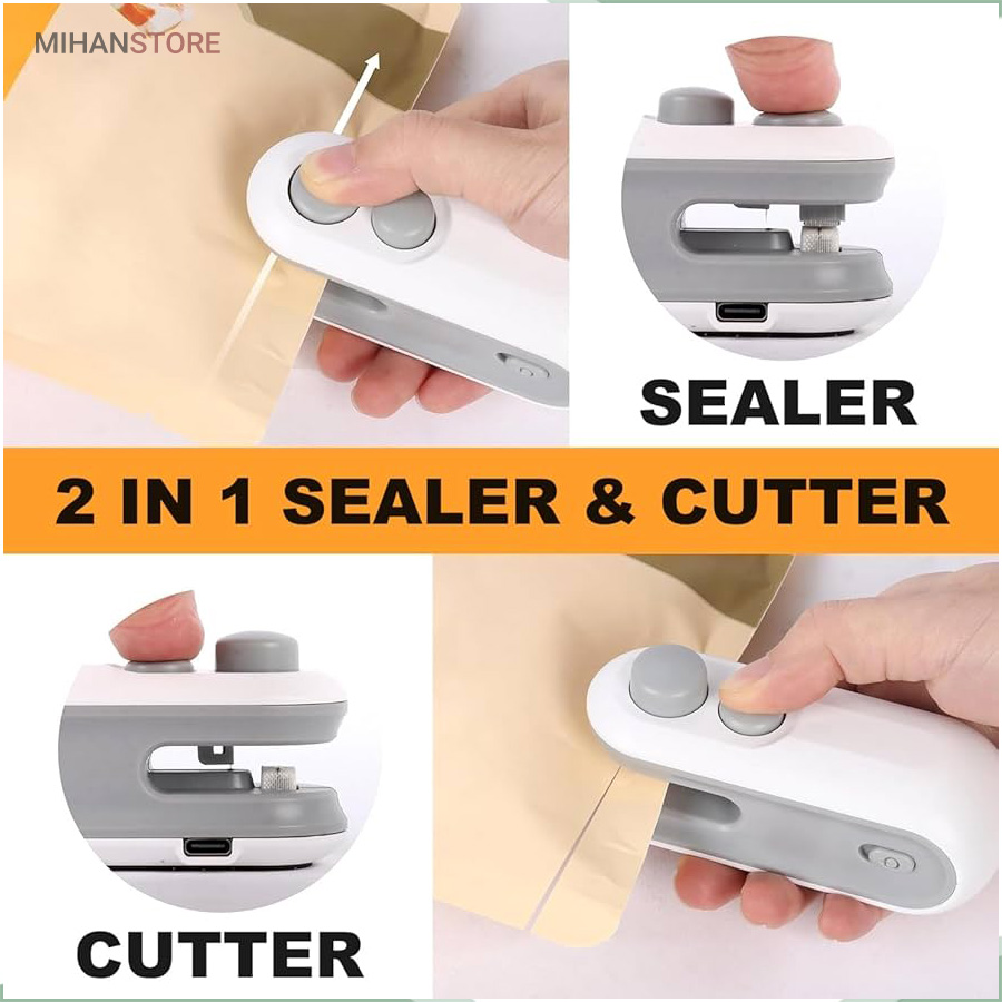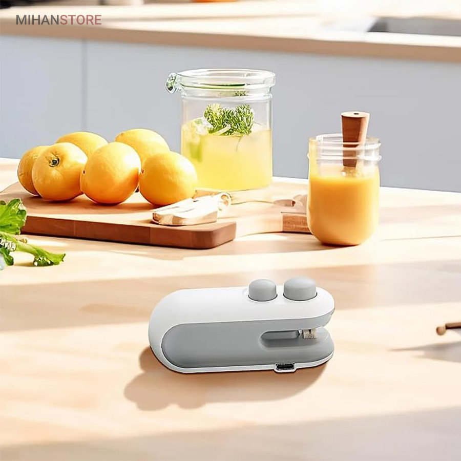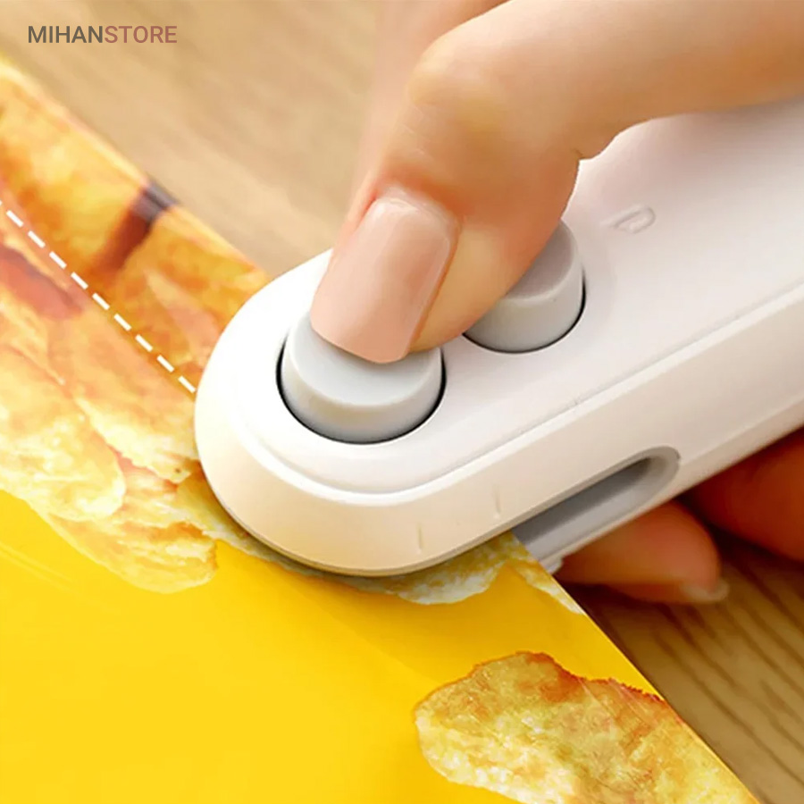 دستگاه پلمپ کیسه شارژی کاتر دار، یک وسیله ضروری برای آشپزخانه است که قادر به بریدن و پلمپ مجدد کیسه های پلاستیکی و کیسه های نگهداری مواد غذایی میباشد. این دستگاه راهحلی کارآمدتر از گیرههای کیسه ارائه میدهد. این محصول جمع و جور و قابل حمل است و استفاده از آن در سفر را آسان میکند.این دستگاه پرس خانگی شارژی کوچک برای انواع کیسه ها مناسب است. میتواند به سرعت کیسه های نگهداری مواد غذایی، کیسه چیپس، کیسه میوه و کیسههای آبنبات را در عرض چند ثانیه پلمپ کرده و آنها را کاملا بسته نگه دارد.دستگاه پلمپ کیسه شارژی کاتر دار با باتری لیتیومی کار میکند،  این دستگاه دارای یک المنت گرمایشی قدرتمند و کارآمد است که میتواند به سرعت ظرف یک ثانیه گرم شود و به محض رسیدن به دمای عملیاتی، کیسهها را پلمپ کند و در نتیجه در زمان صرفهجویی قابل توجهی میکند.  این دستگاه پلمپ پلاستیک و برشدهنده کوچک با کیفیت بالا، برای حمل در سفر، دستی و قابل حمل است و آن را برای مسافرت، کمپینگ و ... ایدهآل است.