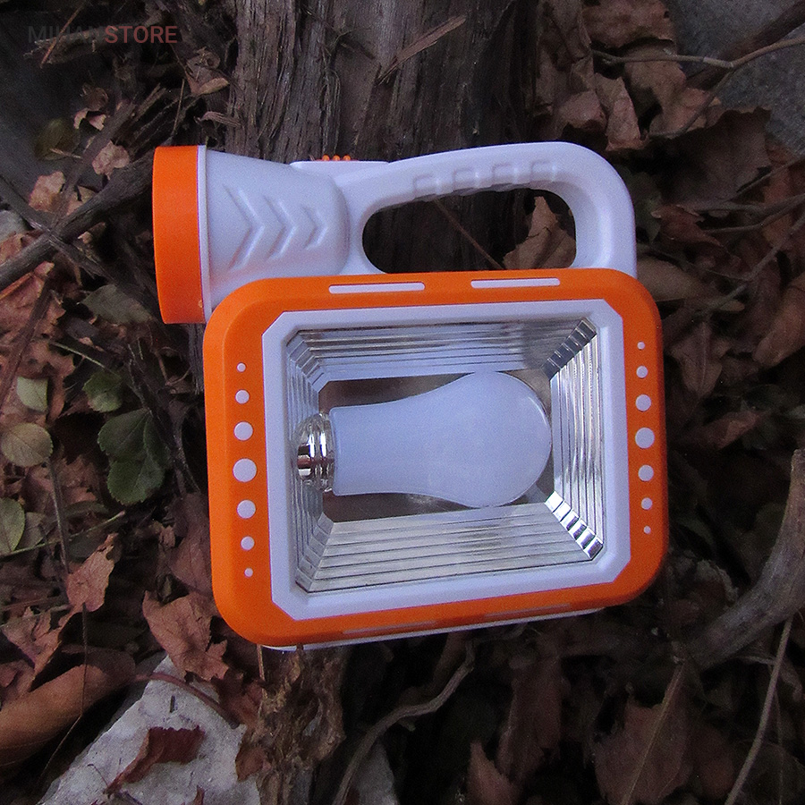 در ابتدا باید بگوییم که چراغ خورشیدی اضطراری قابل شارژ Searchlight Lamp از دو قطعه که شامل چراغ روشنایی COB و LED و پنل خورشیدی تشکیل شده است. اولین بخش این محصول، چراغ قوه بسیار قوی که پرتاب نور قابل توجهی را دارد است دومین بخش چراغ کنار که فضای بیشتری را روشن میکند که در ابعاد12*12 سانتی متر با وزن سبک طراحی شده است. همین وزن سبک و ابعاد جمع و جور یک ویژگی مثبت برای چراغ روشنایی اضطراری محسوب می شود که خیلی راحت می توانید آن را با خود حمل کنید. ویژگی قابل توجه این است که شما اگر در کمپ هستید و دسترسی به برق ندارید این چراق دارای پنل خورشیدی است و خود به خود به وسیله نور خورشید شارژ میشود و شب براحتی قابل استفاده میباشد.و این محصول قابلیت شارژ از طریق برق شهری را هم دارد و همراه چراغ کابل شارژ نیز ارسال میشود.