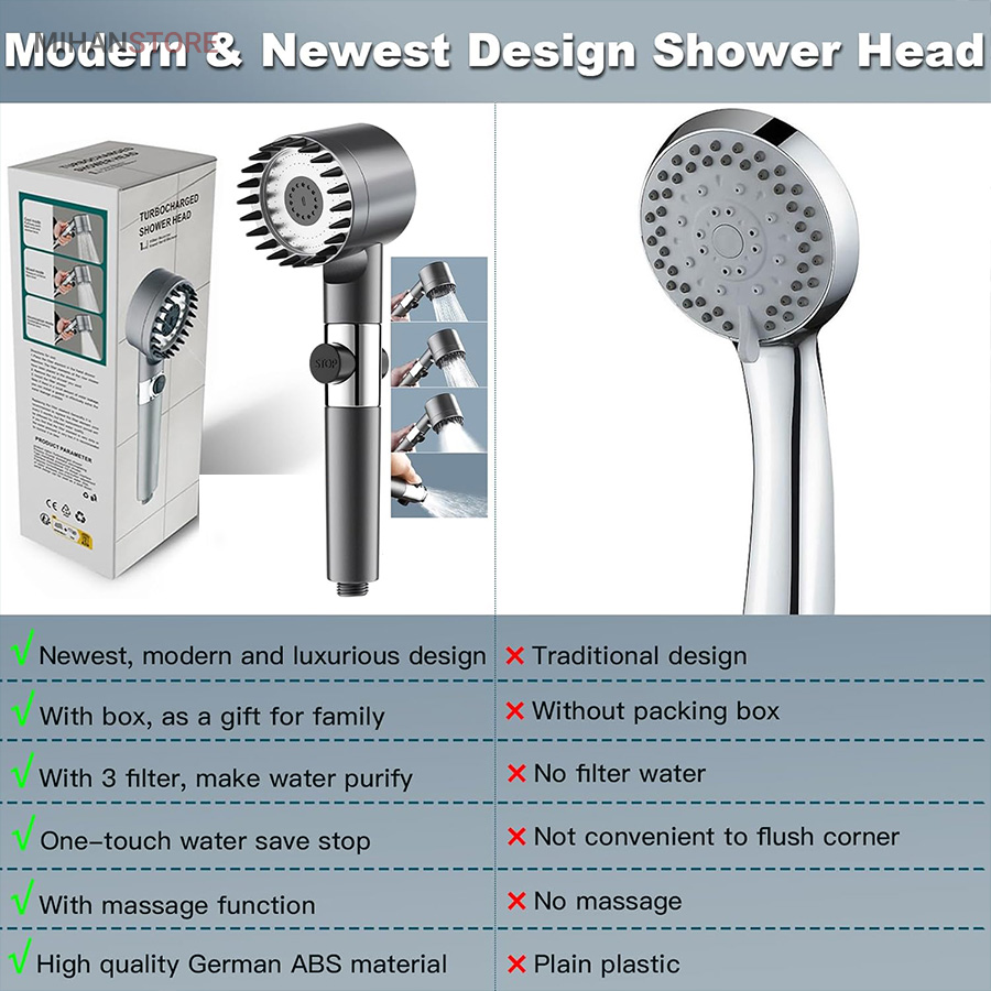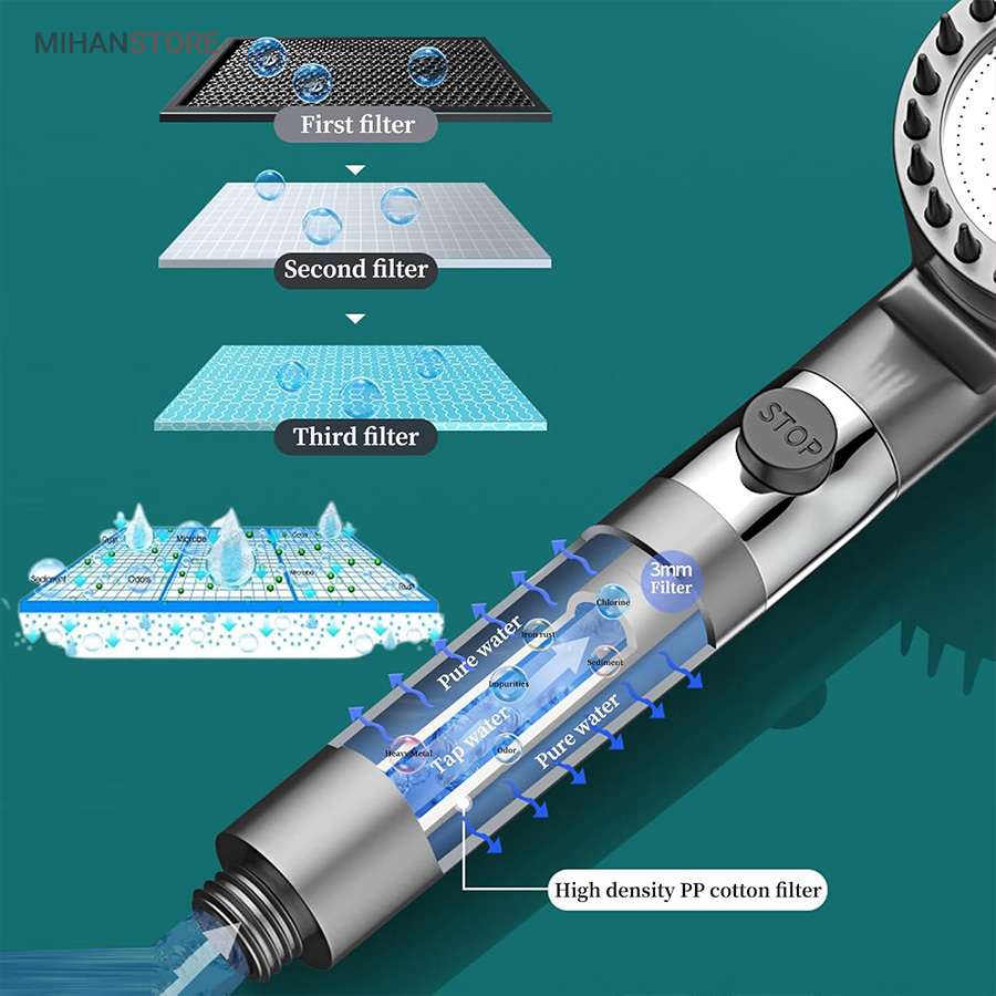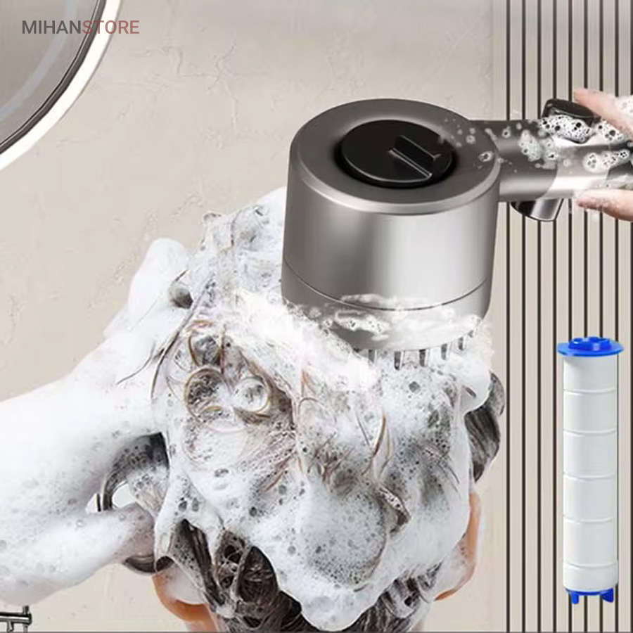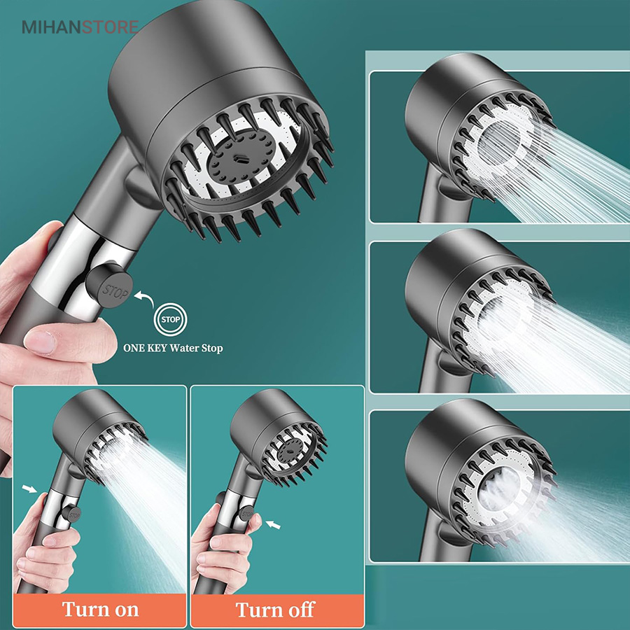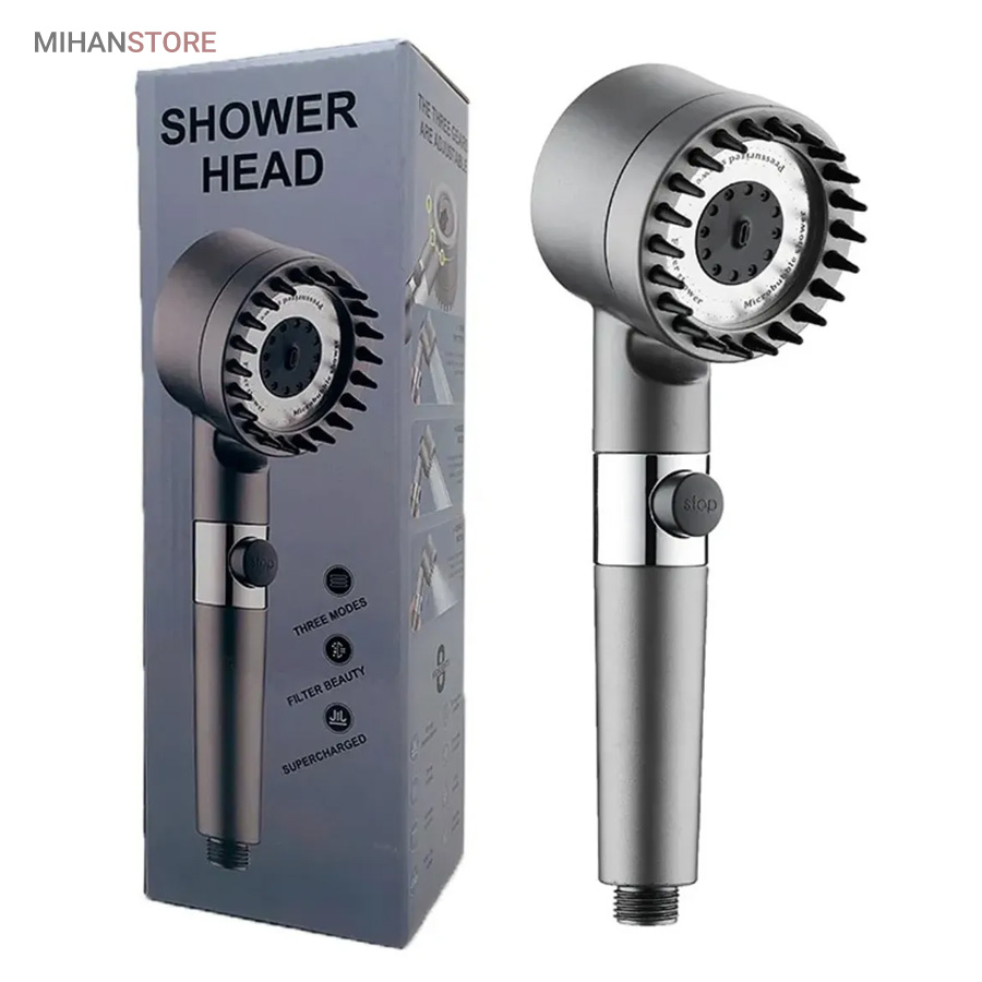 این محصول از جدیدترین و با کیفیت ترین سردوش هایی است که اخیرا روانه بازار ایران شده است. این سردوش دارای 3 حالت پاشش آب میباشد که از جدید ترین تکنولوژی افزایش فشار آب بهره می برد. بر روی دسته دارای دکمه قطع و وصل جریان آب است. همچنین دارای فیلتر الیافی جهت تصفیه آب می باشد و دارای یک ردیف برس سیلیکونی جهت ماساژ پوست بدن و سر می باشد تا تجربه ای لذت بخش از دوش داشته باشید. جهت شست شوی حمام میتوانید سری را جدا کرده و از دسته به عنوان سری پرفشار شلنگ جهت شست شوی سطوح حمام استفاده نمایید.مهم ترین خصوصیت این سردوش دندانه های سیلیکونی سر دوش میباشد که میتوانید به عنوان ماساژور سر و لیف زدن روی پوست استفاده کنید.