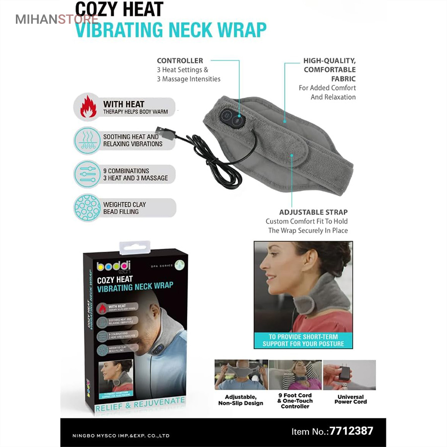 ماساژور و پد حرارتی برقی گردن برای تسکین درد در ناحیه گردن و گرفتگی عضلات در این ناحیه مورد استفاده قرار می گیرد. همچنین برای درد های عصبی و دردهای ناشی از کشیدگی عضلات نیز مفید می باشد این محصول را برای کمک به درمان آرتروز گردن می توان استفاده نمود.یک وسیله مدرن و موثر در حوزه بهبود راحتی و سلامت گردن است. این دستگاه با ادغام فناوری حرارتی و مغناطیسی، تجربهای آرامبخش و درمانی ارائه میدهد.