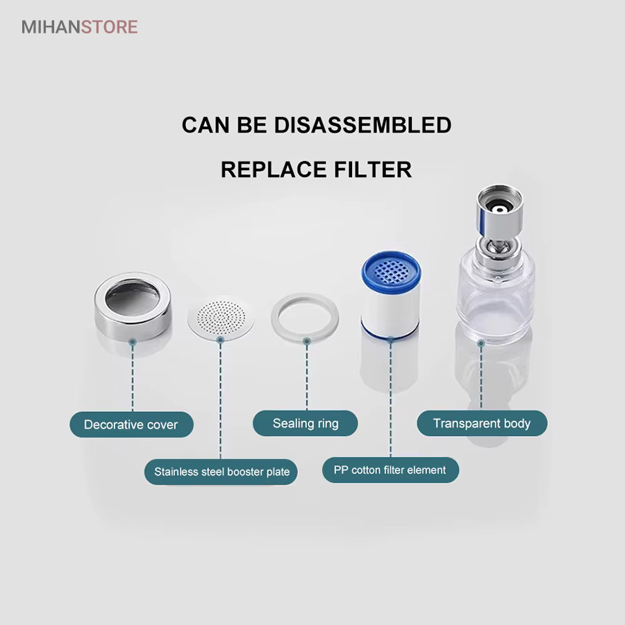 سرشیر تصفیه آب باعث میشود تا ذرات ریز آب فیلتر شود تا آبی تمیز تر نیز برای نوشیدن داشته باشید در اصطلاح باعث کاهش سختی آب میشود و بسیار مناسب استفاده برای نوشیدن شستشو و تبخ غذا میباشد، این محصول دارای دو فیلتر یدک که جمعا با فیلتر دستگاه 3 فیلتر برای شما ارسال میشود که میتوانید در صورت لزوم تعویض کنید.با قابلیت چرخش و مجهز به فیلتر، قادر است بطور کامل در تمام جهات بچرخد، تا به هر نقطهای از سینک یا روشویی دسترسی پیدا کند و امکان شستشوی راحت را بدهد. این سر شیر آب، با استفاده از ترکیبی از مواد باکیفیت و پلاستیک ABS، عمر طولانی و دوام بینظیری دارد. همچنین، فیلتر در آن، ناخالصیها و سختیهای آب شبکه را جدا کرده و خروجی آبی با کیفیت برتری را فراهم میکند.