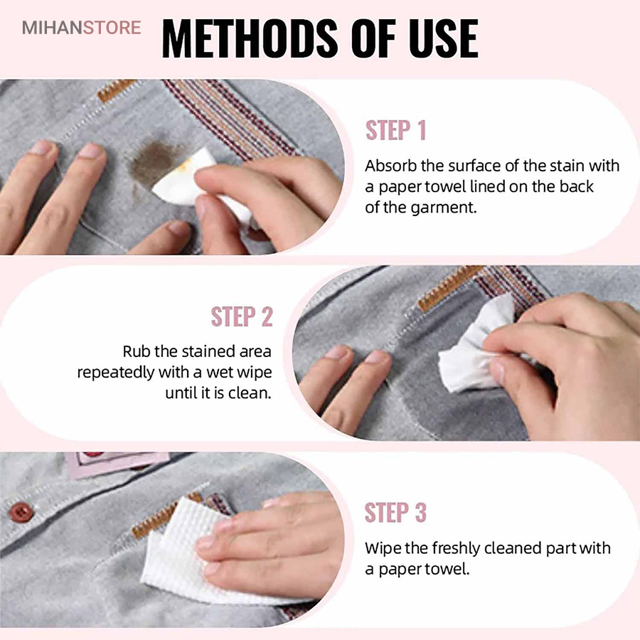 فرمول حرفهای پاک کنندگی لکه، مناسب برای از بین بردن لکههای چربی، قهوه و ... از لباسها، پارچهها و منسوجات و هر جای دیگری که لک شده باشد. دستمالهای پاک کننده لکه فوری برند Eunmsi از پارچه با مواد شوینده ساخته شدهاند که برای کودکان و حیوانات خانگی ایمن و ملایم هستند و میتوانند لکههای روی لباس، پیشبند، فرش، مبلمان و سایر مکانها را به سرعت از بین ببرند. هر بسته شامل 20 عدد پد لکه بر می باشد. این دستمالهای پاک کننده لکه دارای مواد شوینده جهانی هستند و برای انواع لکههای تازه و خشک مؤثر هستند و برای اکثر پارچهها، لکههای آلی یا غیر آلی مناسب هستند. هر پاک کننده لکه مسافرتی به صورت جداگانه بستهبندی شده است و میتوانید دستمال را بردارید و روی لکه بمالید تا شاهد از بین رفتن لکه باشید. با داشتن این دستمالهای پاک کننده لکه مینی قابل حمل بهترین پاک کردن لکه همیشه برای شما در دسترس است وقتی در یک مهمانی، عروسی یا حتی یک شب بیرون با دوستان خود هستید. این پاک کننده لکه میتواند دوست همیشگی شما باشد که در مواجهه با صحنههای ریختن یا برخورد یا لحظات خجالتآور به شما کمک میکند.