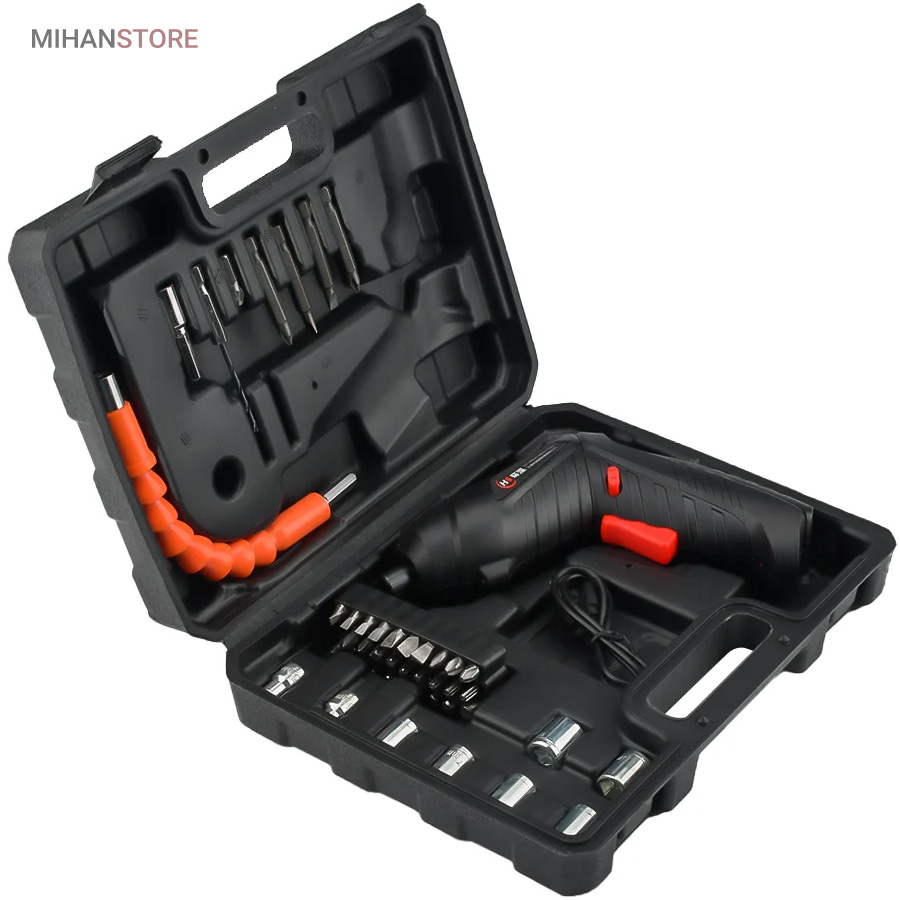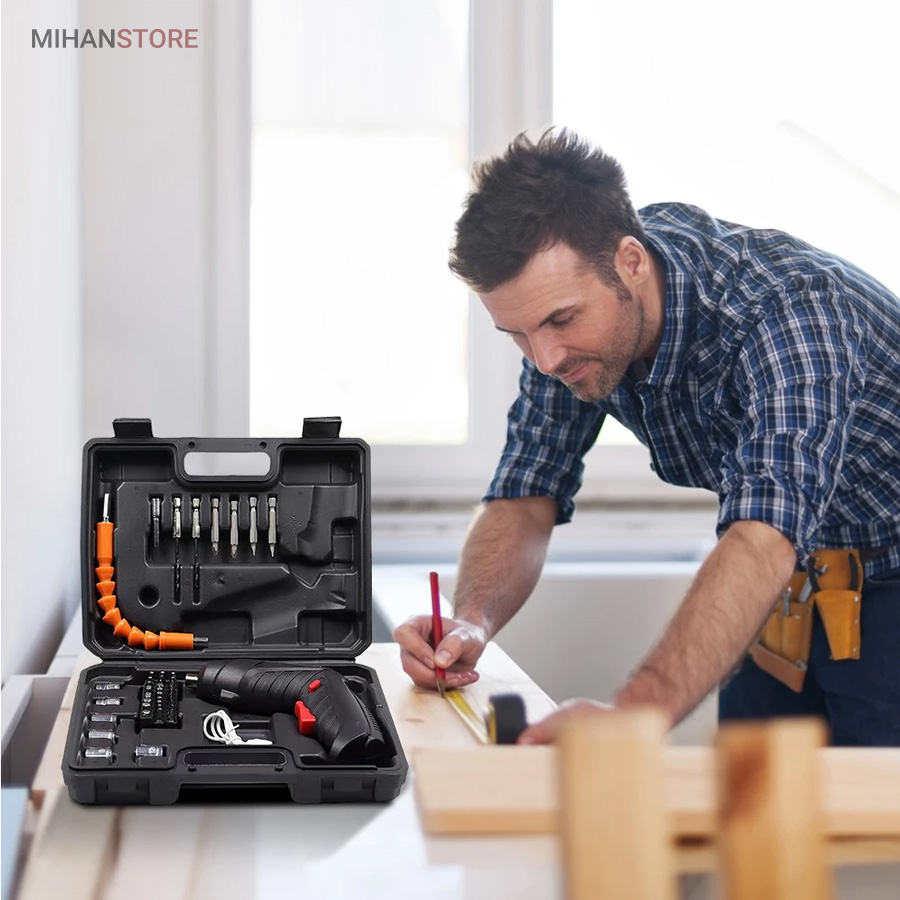 دریل و پیچ گوشتی شارژی 47 تکه قابل شارژ و مجهز به یک باتری لیتیومی 1800 میلی آمپر ساعتی است که عملکرد طولانی مدتی دارد و در صورت شارژ کامل می توان برای مدت طولانی از آن استفاده کرد.  نازل مکش پیچ گوشتی برقی مغناطیسی است، می توانید به راحتی و به سرعت سری پیچ گوشتی های مختلف را تغییر دهید.