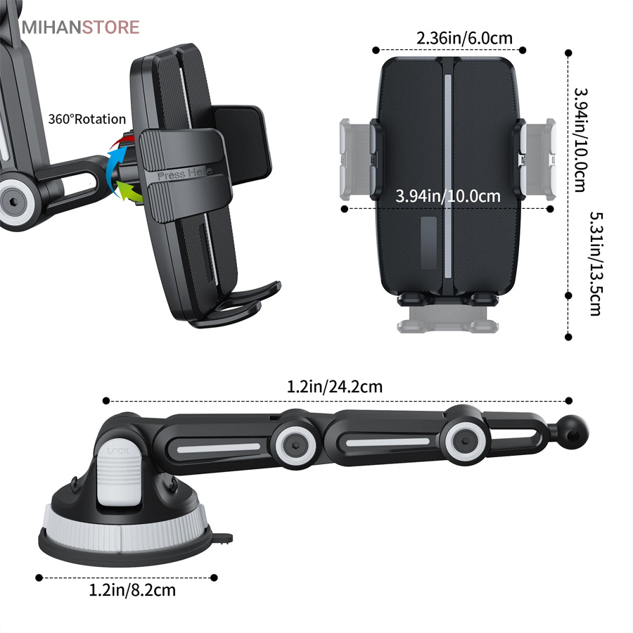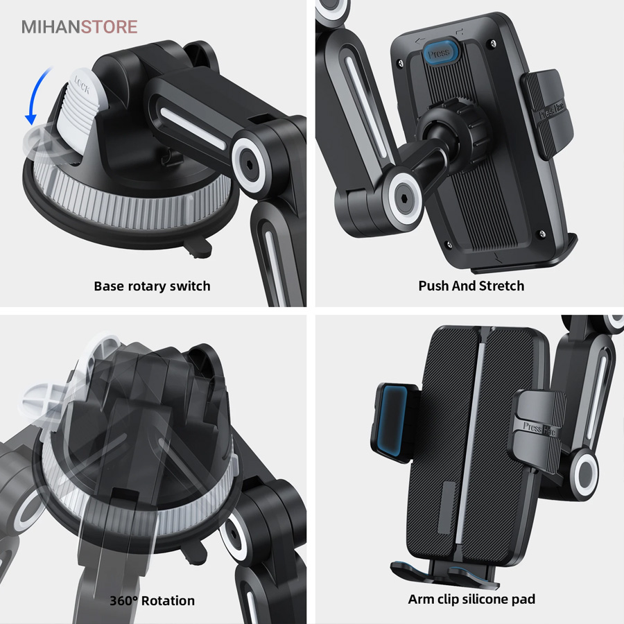 در عین حال که استفاده از موبایل در هنگام رانندگی لازم است، گرفتن موبایل در دست هنگام رانندگی میتواند خطرناک باشد.هولدر موبایل ۳۶۰ درجه خودرو به مدل جرثقیلی مشهور بوده و سه بازوی متحرک دارد که می توان به راحتی آن را به زوایای مختلف حرکت داد.