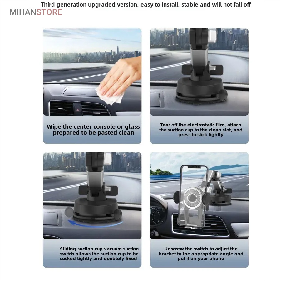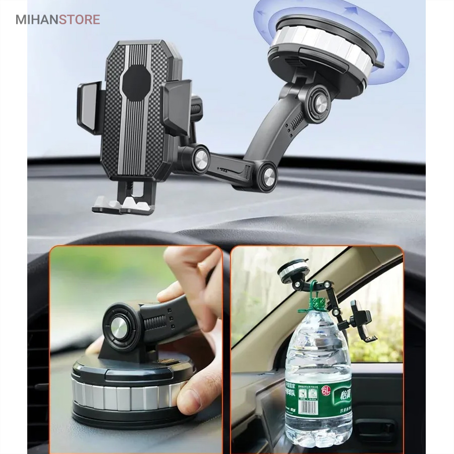 این هولدر گوشی با توجه به سه دکمه مکانیکی روی هر بازو از نگهداری و مقاومت بالایی برخوردار است و تحمل وزن زیادی میکند.  یکی از بهترین خصوصیات این نگهدارنده حالت وکیوم هست که بعد از نصب و قفل کردن هلدر و چرخاندن آن بصورت وکیوم صورت میگیرد.