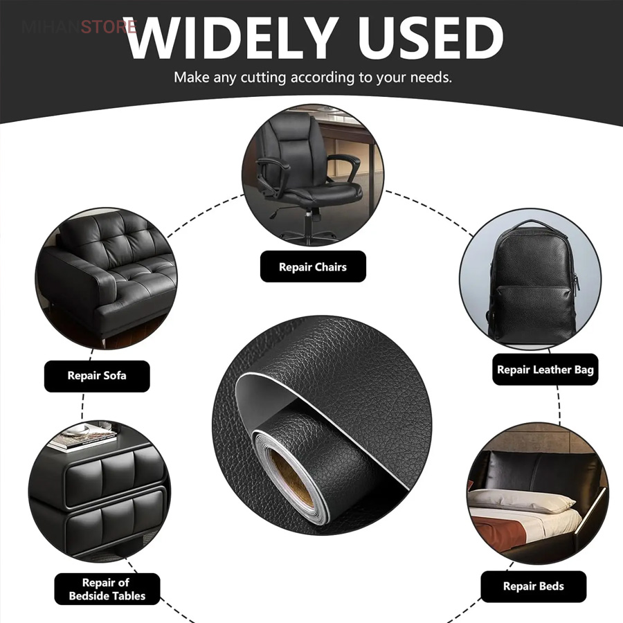 نوار چسب ترمیم و بازسازی چرم یک راه حل سریع و آسان برای تعمیر پارگی‌ها، خراش‌ها و سایر آسیب‌های سطحی روی انواع محصولات چرمی مانند مبل، صندلی ماشین یا موتور سیکلت، کیف و لباس است. این نوارها معمولاً از جنس چرم مصنوعی با یک لایه چسب قوی در پشت ساخته شده‌اند و به راحتی قابل استفاده هستند. چسب چرمی ۲۰×۱۰۰ سانتی متری مخصوص مبل و وسایل چرمی یک چسب منحصر به فرد بوده که با آن می توانید هرچیز چرمی را ترمیم یا تعمیرکنید. به عنوان مثال قسمتی از مبل شما که هزینه زیادی برای آن کرده اید، پاره شده یا دچار خش و رفتگی رنگ شده است و حال بهترین راه این است که بایک چسب چرمی شکیل بدون این که جای دوختی باقی بماند آن را ترمیم نمایید . این  چسب باید  قوی باشد و همچین از جنس چرم مصنوعی باشد تا بتواند زیبایی مبل را حفظ کنید. این چرم فقط برای مبل وصندلی نیست و استفاده های فراوانی دارد. به عنوان مثال برای ترمیم کیف ، صندلی خودرو ، صندلی اداری ، کاپشن چرمی ، و هر آن چیزی که از جنس چرم  طبیی یا چرم مصنوعی ساخته شده باشد بهترین راه حل نوار چسب ترمیم و بازسازی چرم است . چرم چسبدار یک لایه چرم و یه لایه برچسب جدا شوند دارد که پس از برش به میزان دلخواه و کندن روکش در محل نصب شده و با حفظ  زیبایی وسیله شما ترمیم و از پش روی پارگی جلوگیری میکند . این لایه چسب را میتوانید با برش به وسیله قیچی به هرشکل در بیاورید و علاوه بر ترمیم برای زیبای سازی نیز استفاده نمایید.