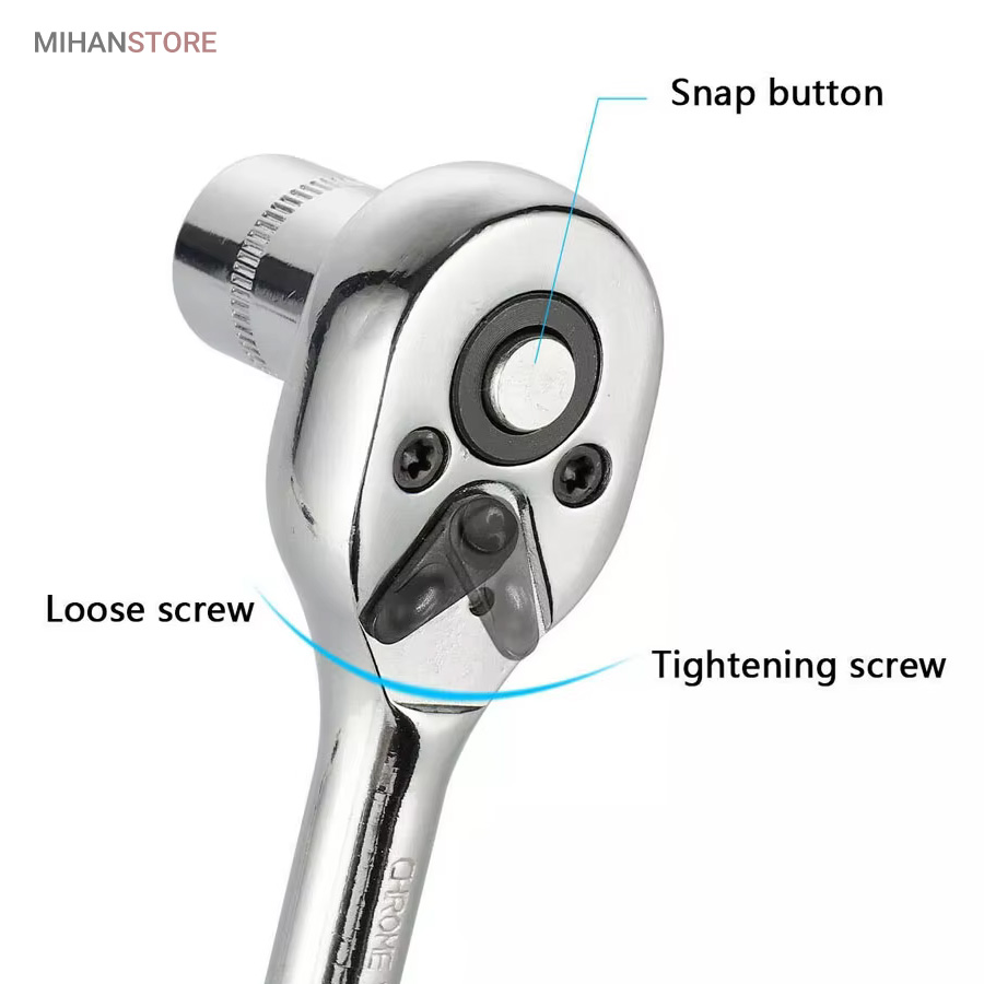 - 1 عدد آچار جغجغهای به طول 19 سانتیمتر با درایو 1/4 اینچ