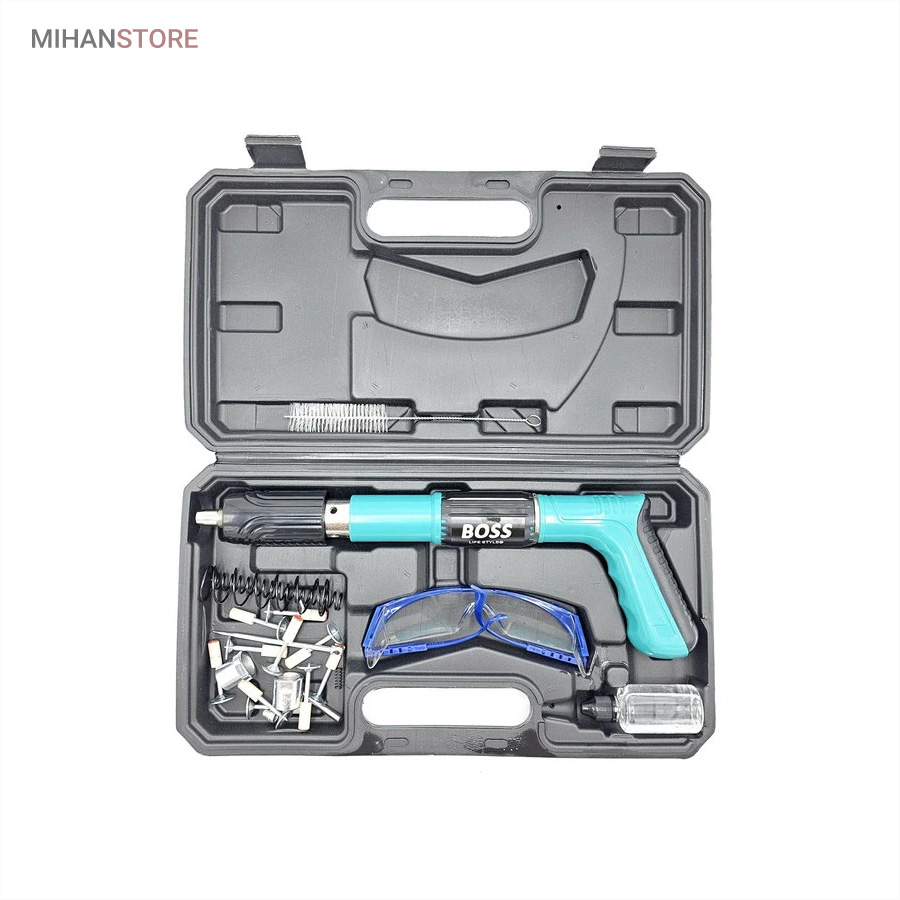 میخکوب دستی چاشنی خور Boss همراه لوازم و کیف ، یک ابزار کاربردی و پرکاربرد برای نجاران، تعمیرکاران، و علاقهمندان به صنعت ساختمان است! این محصول با قدرت فوقالعاده، میخها را تا عمق 2.7 سانتیمتر در سختترین مواد فرو میکند و با وزن سبک و طراحی ارگونومیک، کارایی شما را به سطح جدیدی میرساند!