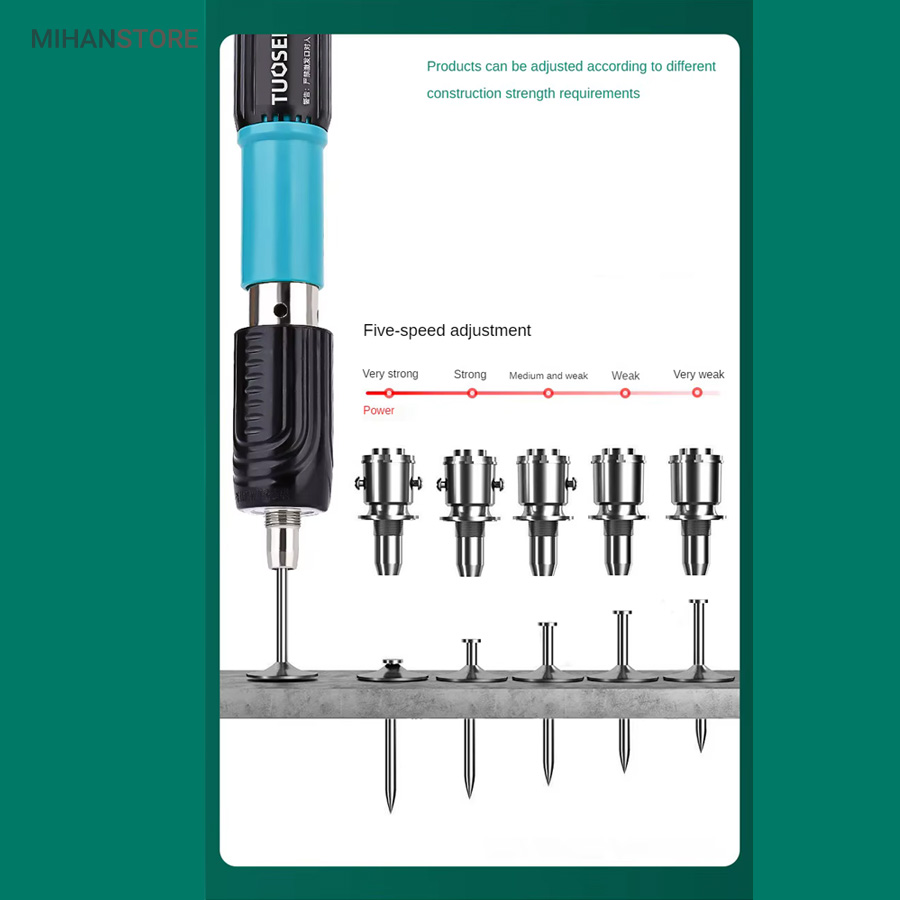 - میخکوبی تا عمق 3 سانتیمتر:قدرت کافی برای ثابت کردن میخ در مصالح سخت مانند بتن و چوب فشرده.فنرهای مقاوم برای عملکرد روان و بدون گیر کردن میخ.