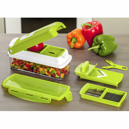 نایسر دایسر پلاس وسیله ای چند کاره است که کار در آشپز خانه را آسان می کند. شما می توانید پیاز، گوجه فرنگی و خیار را برای سالاد فصل و سیب زمینی را برای سرخ کردن در زمانی بسیار کوتاه و به راحتی خرد کنید. می توانید با استفاده از تیغه های تیز و با کیفیت نایسر دایسر پلاس در هر ثانیه چندین برش را با هم انجام دهید.