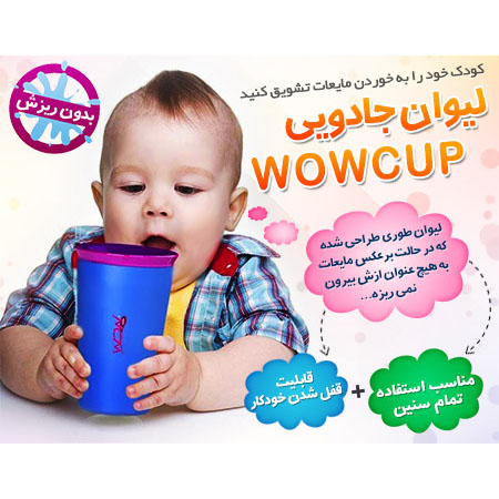 لیوان Wow Cup را می توانید به صورت 360 درجه بدون آن که قطره ای از مایع درون آن، به بیرون بریزد بچرخانید.  مکانیسم نوآورانه لیوان با درپوشی دولایه که تنها با فشردن لب روی لایه بیرونی درپوش لیوان، مایع خارج میشود که این امر اجازه هدر رفتن و ریختن نوشیدنی را نمیدهد. از دیگر ویژگی های این لیوان دارا بودن تشتک سر پلاستیکی می باشد که مانع از آسیب دیدن و کج شدن دندان های کودک شما می شود. همچنین نوع طراحی و رنگ های شاد این محصول کودک شما را تشویق به نوشیدن مایعات خواهد کرد.