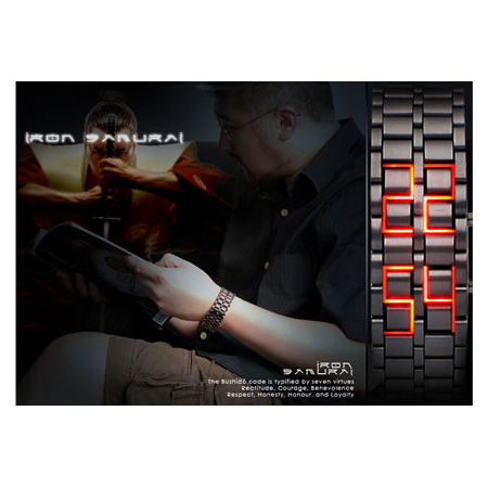 اين ساعت با تمامي ساعت هاي انالوگ و يا ديجيتال هاي قديمي فرق مي كند. ساعت سامورايي نسل جديدي از ساعتهاي مچي شيك و زيبا ميباشد كه به رهبري طرحهاي ژاپني LED دار به تازگي وارد بازار ساعت شده اند. اين ساعت كاملا شبيه به يك دستبند تمام استيل فوق العاده زيبا مي باشد كه با شيوهاي متفاوت زمان را به نمايش ميگذارد و ديگران را حيرت زده خواهد كرد.