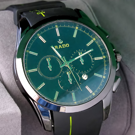 با سلام. کلیات ساعت مشکی است دوست عزیز اما اون خط ها و لوگو رادو با رنگ های زرد ابی قرمز سفید موجود است که هنگام ثبت سفارش در قسمت پیام سبد خرید میتونید ذکر کنید
